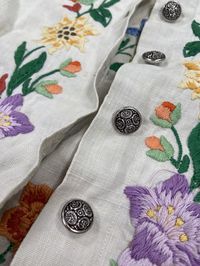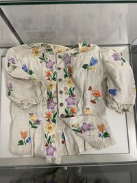 Die Tage werden länger, die Vögel zwitschern, Bäume treiben Knospen, und überall sprießen Tulpen und Schneeglöckchen. Der Frühling steht vor der Tür. Sobald die ersten warmen Sonnenstrahlen erscheinen, fällt auf, wie Menschen ihre Winterkleidung gegen leichtere Frühlingsbekleidung tauschen. Zudem schmücken bunte Dekoeier die Bäume vor den Haustüren. Dies ist ein sicheres Zeichen, dass Ostern naht und der Sommer nicht mehr weit entfernt ist. Passend zum Anlass stelle ich ein spannedes Objekt aus unserer Sammlung vor: Es handelt sich hierbei um einen handgenähten und handbestickten Spencer aus Leinen. Die Stickereien zeigen florale Aplikationen mit Blumenmustern.
