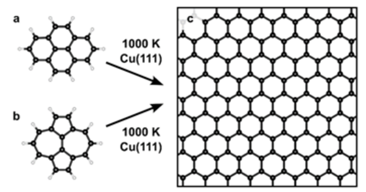 Using polycyclic aromatic hydrocarbons for graphene growth on Cu(111) under ultra-high vaccum.
