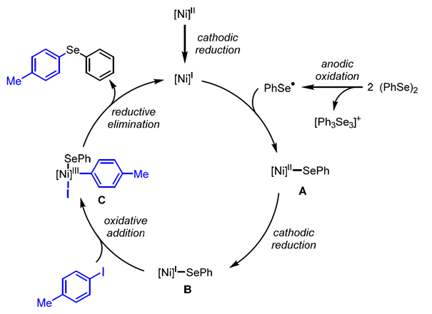 195. J. Queder, G. Hilt, Molecules 2024, 29, 4669; DOI: 10.3390/molecules29194669. Electrochemical Nickel-Catalyzed Synthesis of Unsymmetrical Diorganyl Selanes from Diaryl Diselanes and Aryl and Alkyl Iodides.