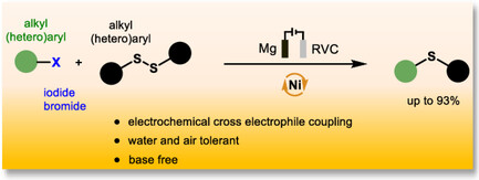 198. J. Queder, G. Hilt, Adv. Synth. Catal. 2025, 367, e70116, DOI: 10.1002/adsc.70116. Thioether Synthesis via the Nickel-Catalyzed Electrochemical Cross Electrophile Coupling of Aryl/Alkyl Disulfides and Aryl/Alkyl Halides.