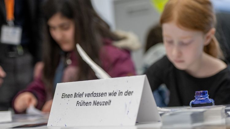 Ein Leben ohne WhatsApp: Früher wurden Briefe mit einer Vogelfeder geschrieben. Briefumschläge gab es vor 300 Jahren noch nicht. Das Briefpapier wurde damals zu Paketen gefaltet. Es gab ein ausgeklügeltes System an Falttechniken. An der Station des SULab könnt ihr selbst ausprobieren, wie man mit einer Feder schreibt und wie Briefe früher sicher verschlossen und gesiegelt wurden.