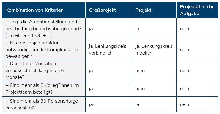 Abgrenzung Projekt / Großprojekt in zentraler Verwaltung