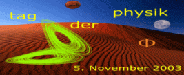| 10:30 - 11:15 Uhr | Vortrag aus der Experimentalphysik Prof. Dr. Joachim Peinke: Chaotische Experimente - experimentelles Chaos Großer Hörsaal (W3 1-161) |