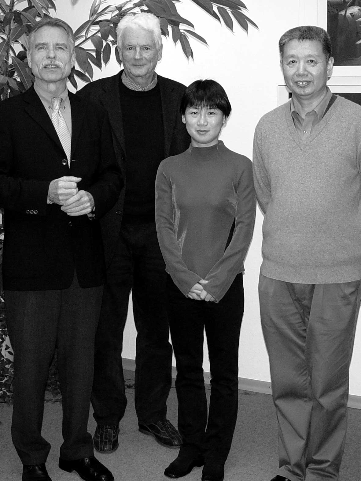 Empfang bei Unipräsident Prof. Dr. Siegfried Grubitzsch: Prof. Dr. Klaus Schüler, Wiss. Mitarbeiterin Wang Li, die zur Zeit bei Schüler promoviert und Prof. Dr. Wang Tongsan |