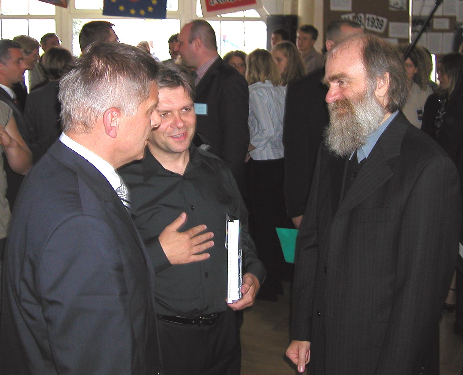 Auf dem Foto von links: Ministerpräsident Marek Belka, Krzysztof Pydynski, polnischer Jazzmusiker, und Prof. Bernhard Mergner