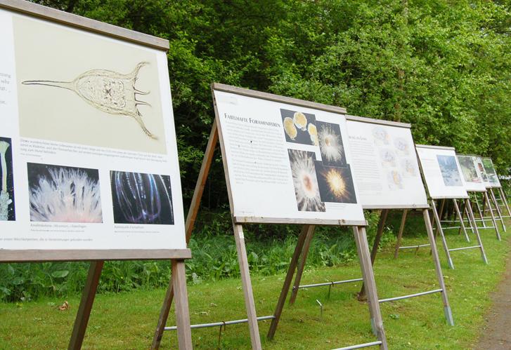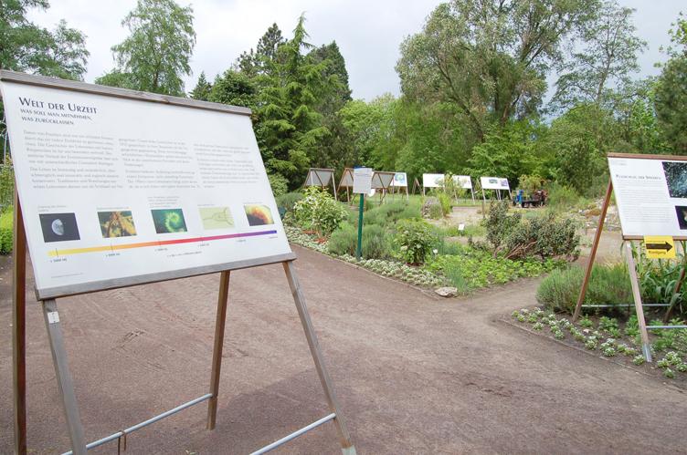 Die Farbtafeln sind auf einer rund 800 m langen Strecke aufgestellt. Der Weg beginnt mit der Entstehung der Sonne und der Erde vor etwa 4,6 Milliarden Jahren, rund zehn Milliarden Jahre nach dem Urknall, d.h. jeder Besucher legt mit jedem Schritt durch die Ausstellung vier bis sechs Millionen Jahre zurück – bis er auf den letzten Metern die Anfänge der Menschheit bestaunen kann. Viele Tafeln regen die Betrachter zum Nachdenken über Vergangenheit und Zukunft an. Die Einsichten in die Komplexität und Verwobenheit lebender Systeme lassen so manche Schulweisheit in völlig neuem Licht erscheinen und öffnen die Augen für bisher ungeahnte Zusammenhänge des Lebens.