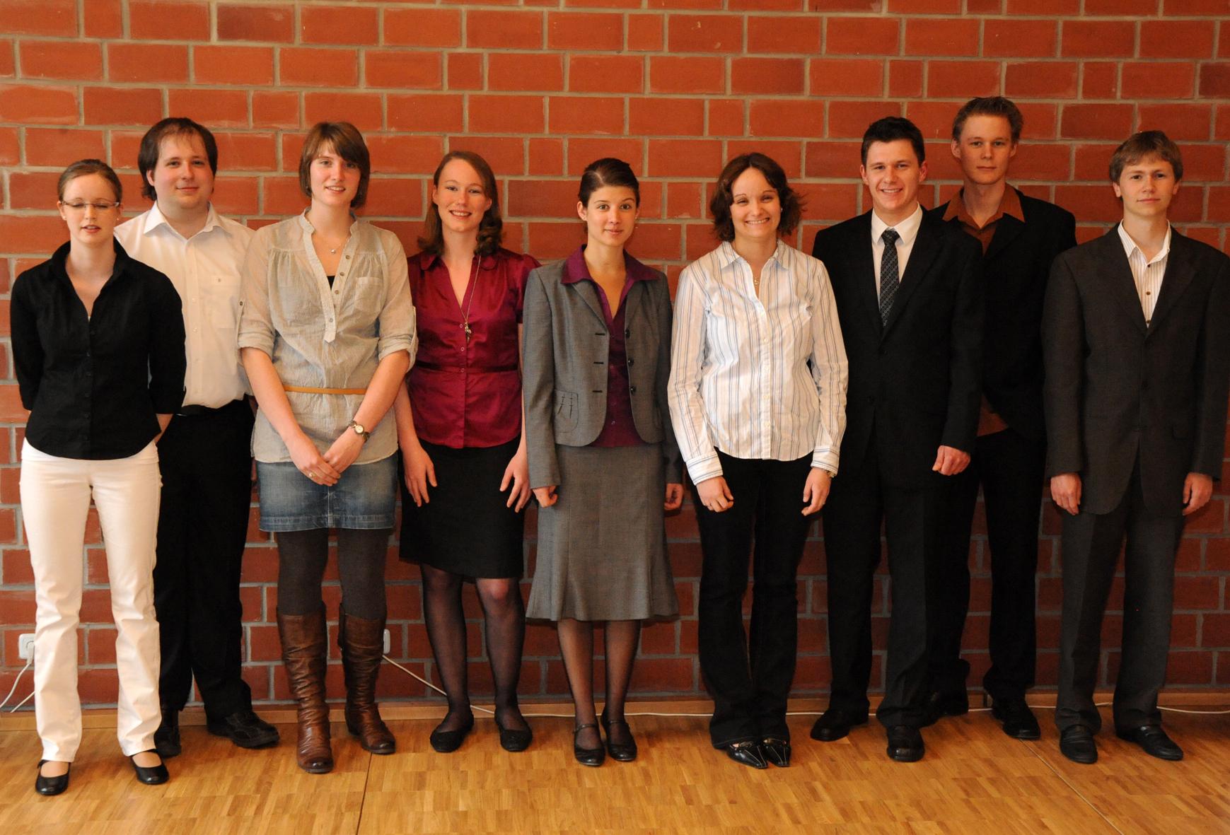 Die mit 500 Euro dotierten Einzelpreise gingen an Charlotte Gärtner (Philosophie/Werte und Normen, FK III), Sören Koselitz (Theologie/ Religionspädagogik, Musik FK IV), Ann-Kathrin Bercht (Mathematik, Ev. Theologie/Religionspädagogik, FK IV), Lena Jahnke (Biologie, Chemie, Sport FK V), Christina Delfs (Mathematik, FK V), Sophie Sauerzapf (Engineering Physics, FK V), Timo Stalling (Chemie, FK V), Daniel Nickelsen (Physik, FK V) und Nils Fabian Reimers (Informatik und Mathematik, FK V).