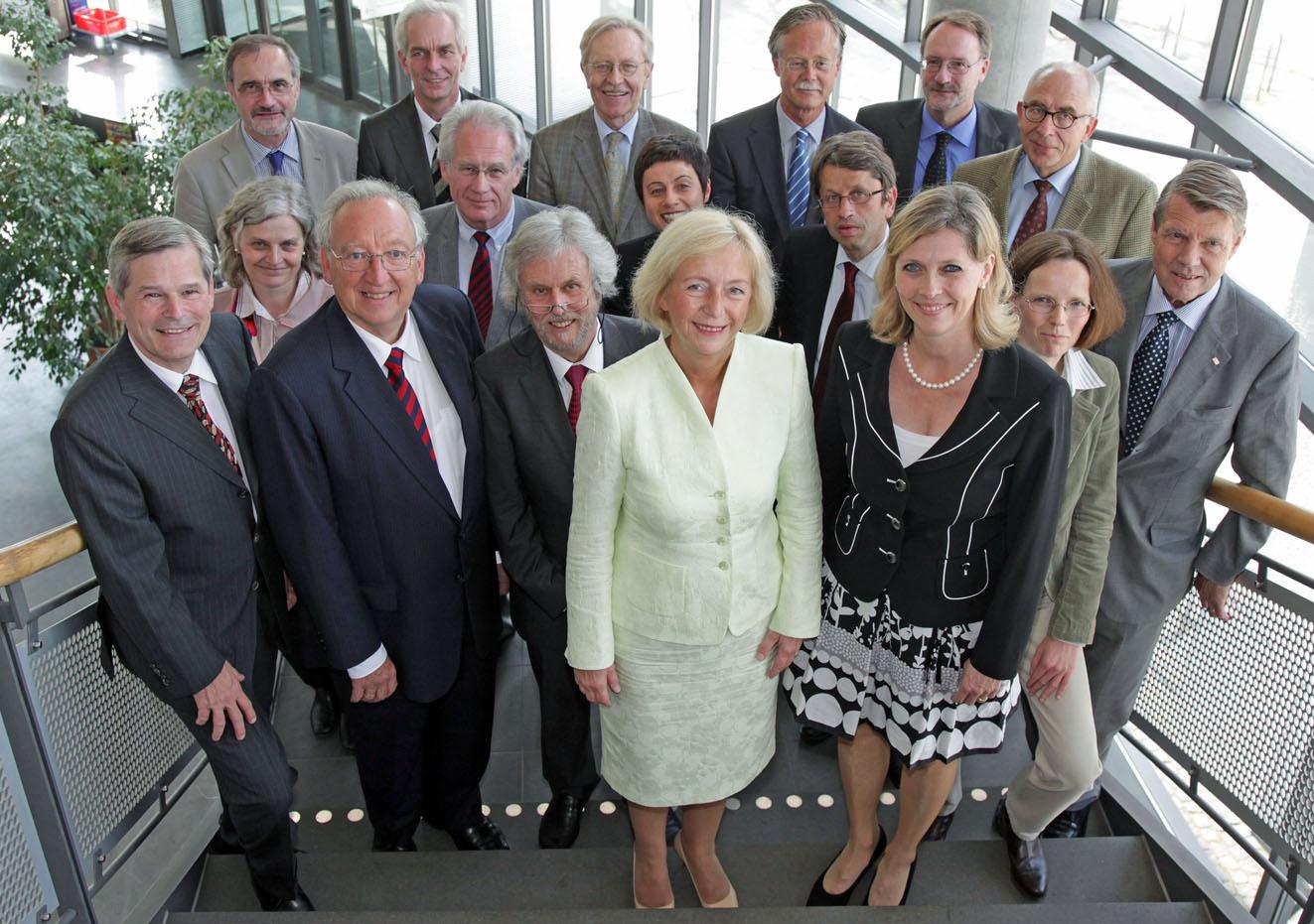 Niedersachsens Wissenschaftsministerin Prof. Dr. Johanna Wanka und Universitätspräsidentin Prof. Dr. Babette Simon (vorne) mit den Mitgliedern des Gründungsausschusses.