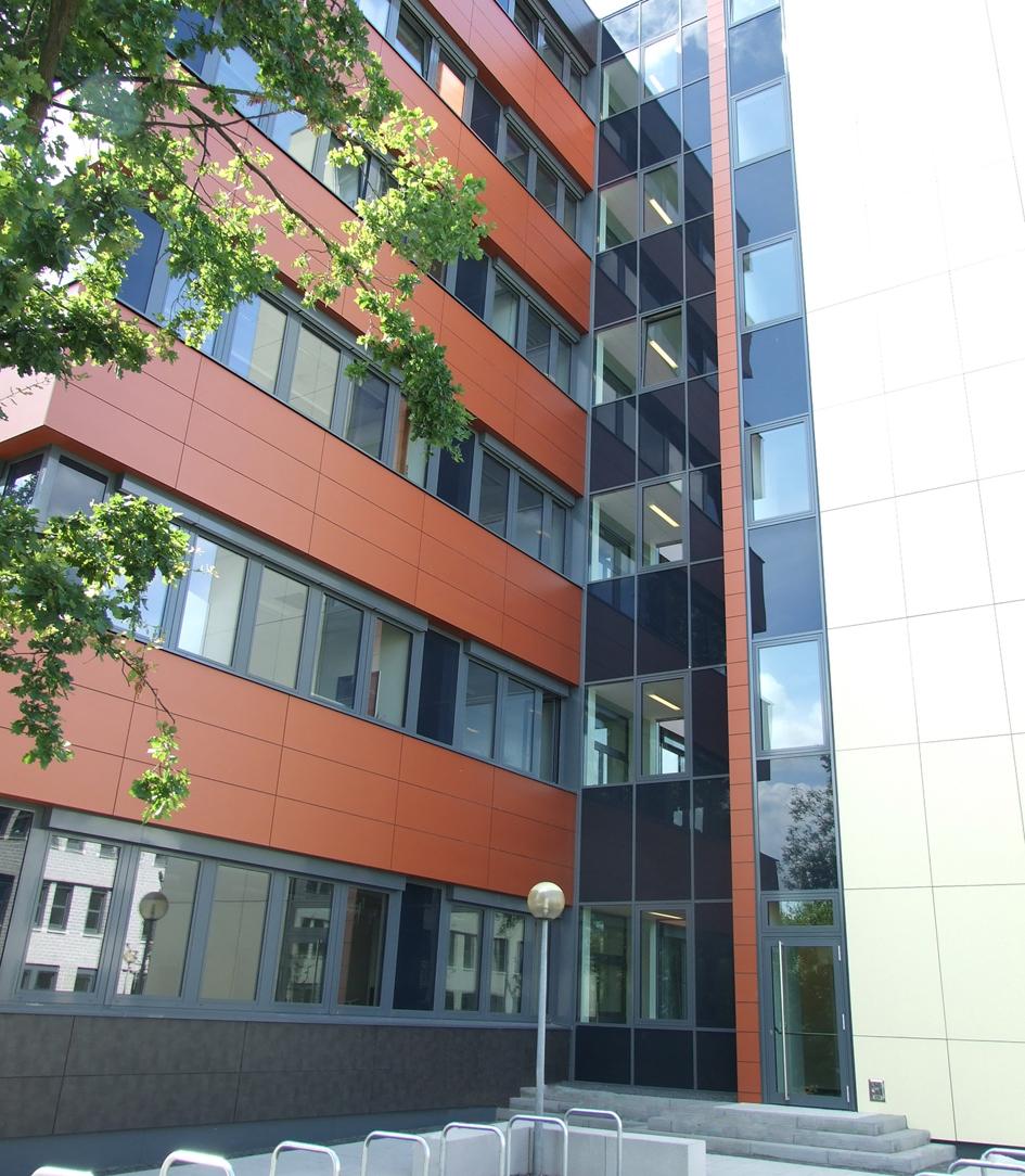 Das Gebäude A6 wurde Mitte der 1970er Jahre als sechsgeschossiger Stahlbetonskelettbau errichtet. Die Fassade aus Waschbetonplatten ist nun durch einen Vollwärmeschutz gedämmt worden, und die Fenster haben eine Wärmeschutzverglasung erhalten. Eine Sonnenschutzanlage und die energieeffiziente Beleuchtung von Fluren und Treppenhäusern – zum Teil mit LED-Leuchten – gehörte ebenfalls zu den Sanierungsmaßnahmen.