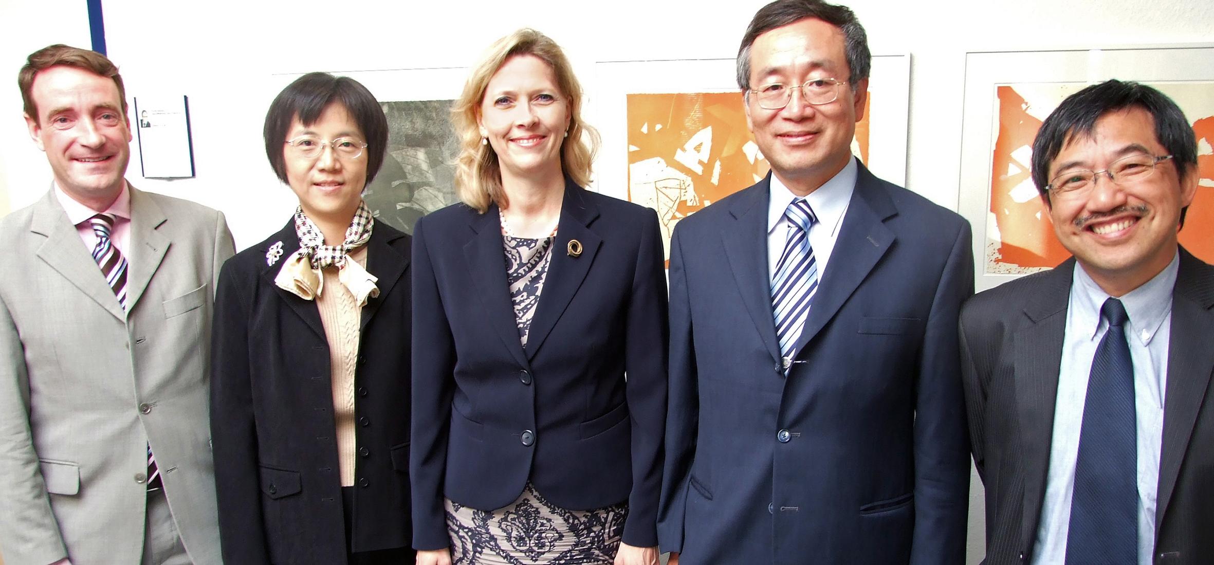 Auf dem Foto (v.l.n.r.): Prof. Dr. Bernd Siebenhüner (Vizepräsident Universität Oldenburg), Liu Wen-Huei (Ministry Of Education Taiwan), Prof. Dr. Babette Simon (Präsidentin Universität Oldenburg), Dr. Lung-Sheng Steven Lee (Präsident National United University), Dr. Jiunn-Chi Wu (National Central University).