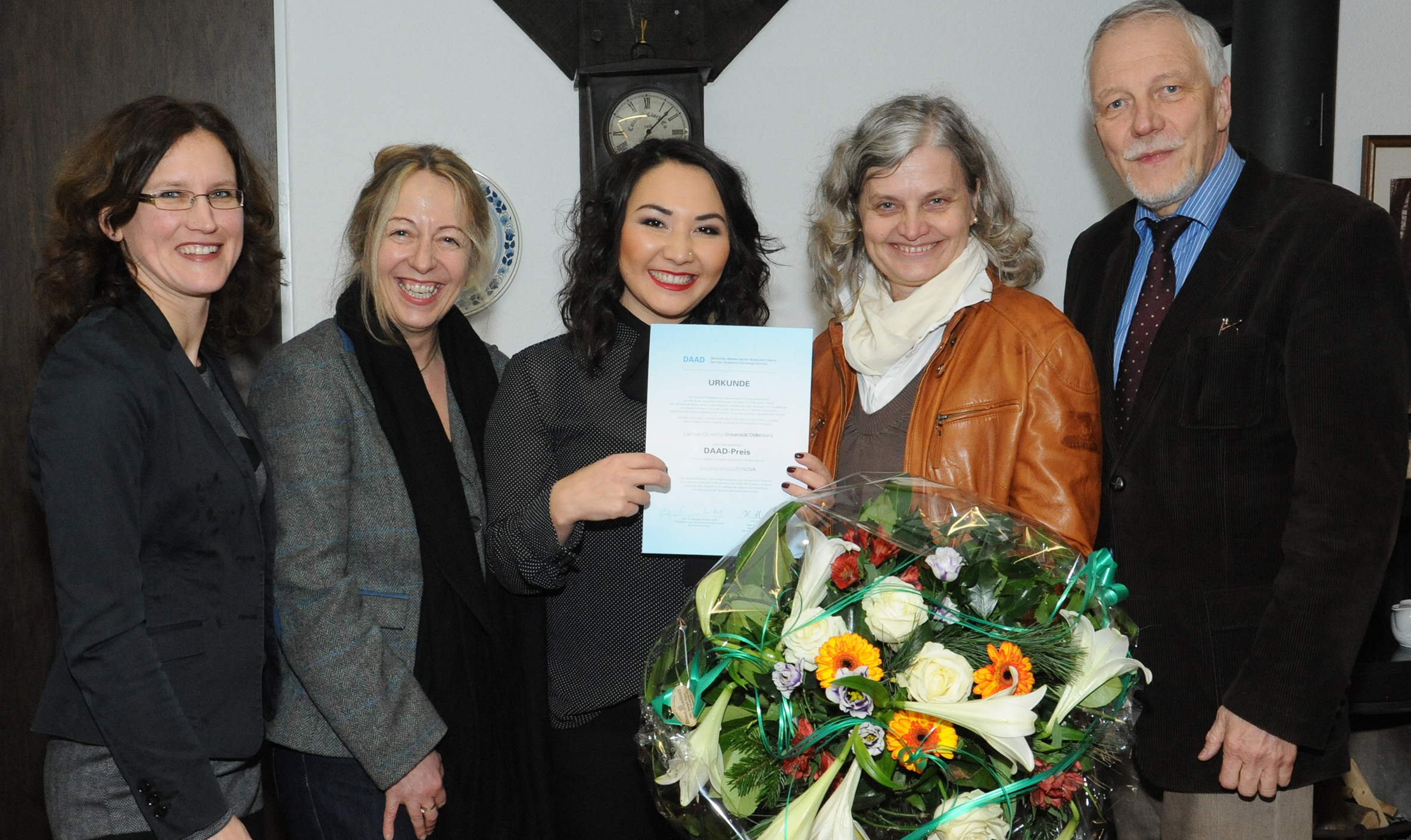 Oldenburg. Die Kasachin Aigerim Malgazhinova, Masterstudentin der Universität Oldenburg, hat heute den Preis des Deutschen Akademischen Austauschdienstes (DAAD) erhalten. Die mit 1.000 Euro dotierte Auszeichnung würdigt die herausragenden akademischen Leistungen der Studentin sowie ihr bemerkenswertes soziales Engagement. Die Laudatio hielt Prof. Dr. Gisela C. Schulze, Institutsdirektorin für Sonderpädagogik und Rehabilitation.