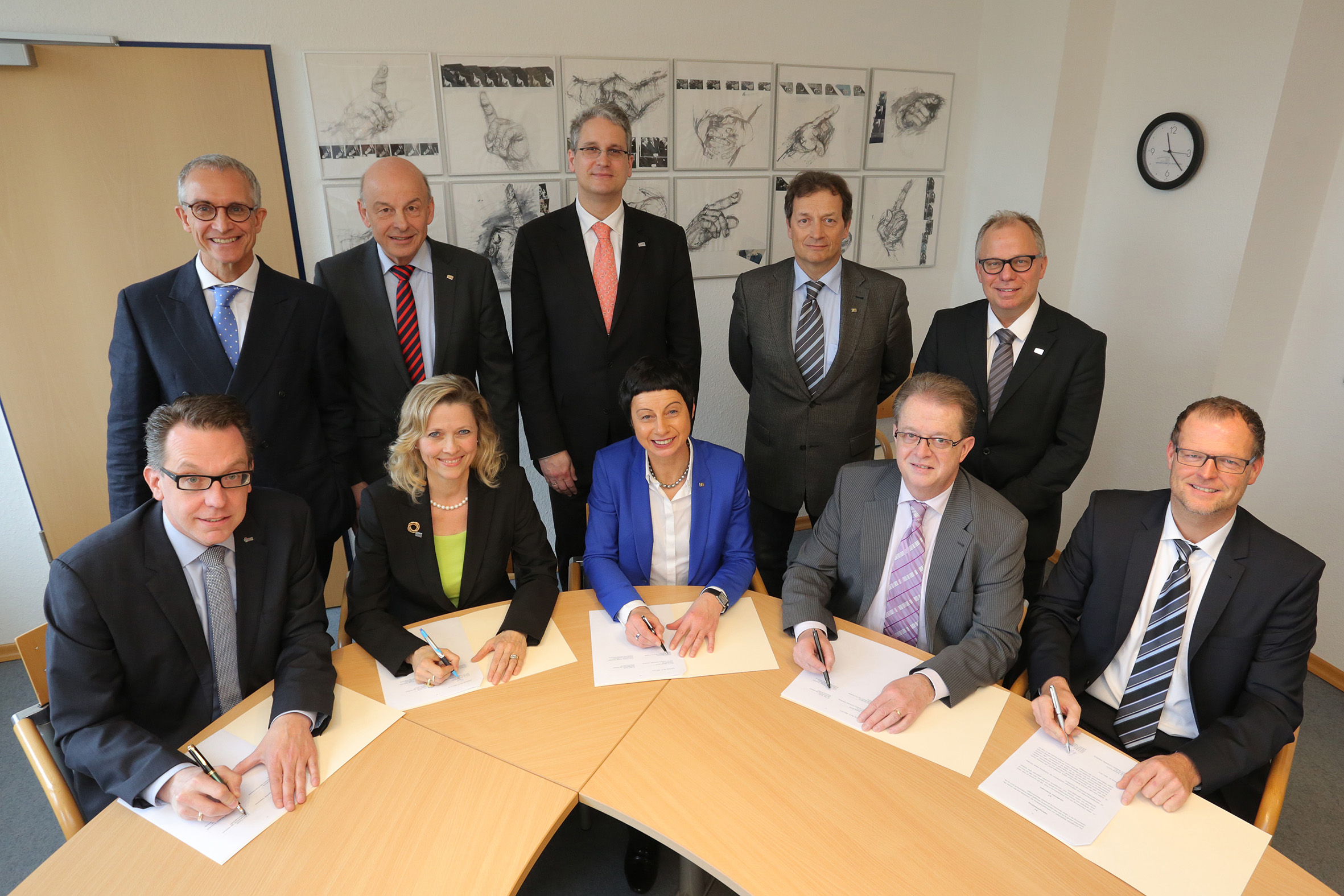 Oldenburg. „Medizinischer Campus Universität Oldenburg“ – diese Bezeichnung dürfen künftig das Evangelische Krankenhaus Oldenburg, das Klinikum Oldenburg, das Pius-Hospital Oldenburg und die Karl-Jaspers-Klinik am Standort Bad Zwischenahn exklusiv verwenden. Das regelt eine Vereinbarung, die unterzeichnet wurde von Universitätspräsidentin Prof. Dr. Babette Simon, dem Vorstand des Evangelischen Krankenhauses, Armin Sülberg und Dr. Rüdiger Schönfeld, dem Geschäftsführer des Klinikums Oldenburg, Dr. Dirk Tenzer, der Geschäftsführerin des Pius-Hospitals, Elisabeth Sandbrink, und dem Geschäftsführer der Karl-Jaspers-Klinik, Axel Weber.