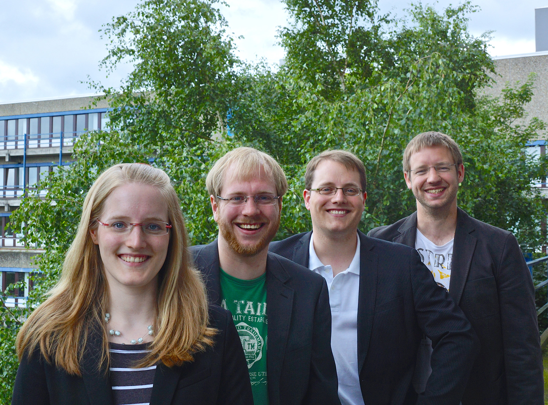 Foto 2: Gründungsteam „MiCROW“ (v.l.n.r.): Rebecca Mikczinski, Tobias Tiemerding, Manuel Mikczinski, Claas Diederichs (Projektleiter)