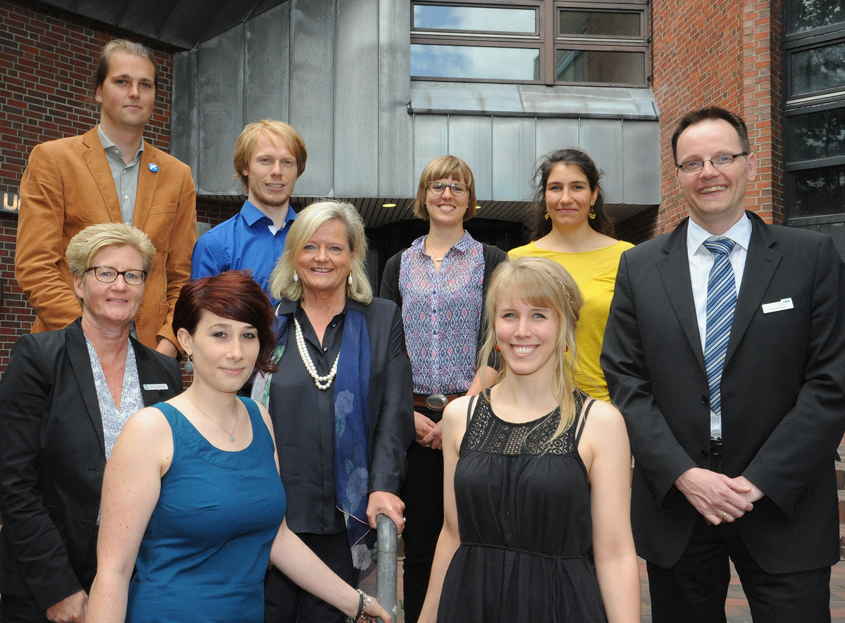 Auf dem Foto (hintere Reihe von links): die Preisträger Ingo Gerhardt, David Scholz, Carolin Selig, Micòl Feuchter sowie (vordere Reihe von links) Britta Silchmüller von der OLB, Preisträgerin Sarah-Jane Schröder, Uni-Vizepräsidentin Prof. Dr. Gunilla Budde, Preisträgerin Charlotte von Harling und Florian Maaß von der EWE AG. Es fehlt Preisträgerin Mareike Hinrichs.