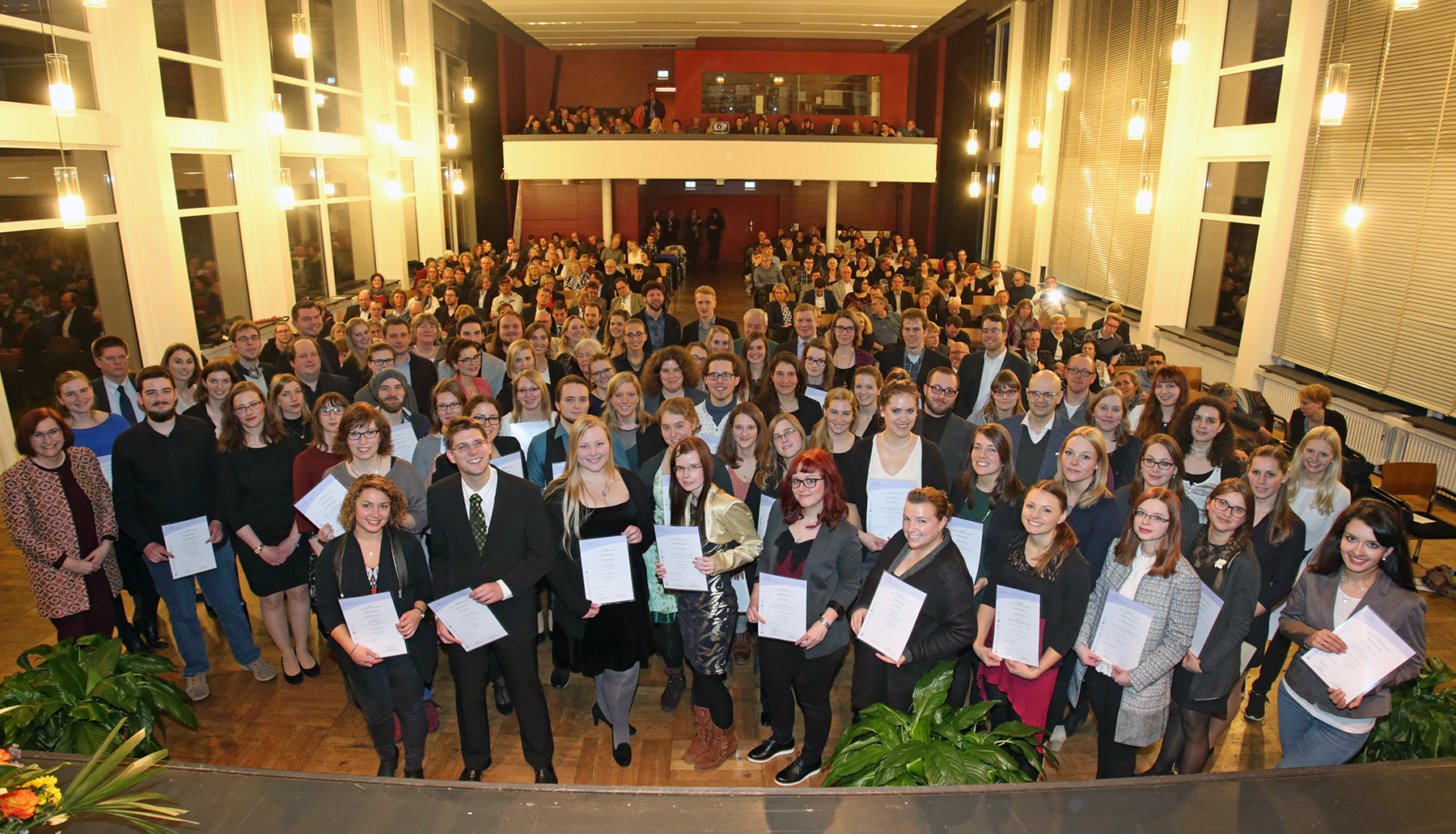 Oldenburg. 75 Absolventinnen und Absolventen der Fakultät IV Human- und Gesellschaftswissenschaften sind am Freitag, 17. Februar, in einer Feierstunde an der Universität Oldenburg verabschiedet worden. Die Bachelor-, Master-, und Magister-AbsolventInnen erhielten ihre Urkunden aus den Händen von Prof. Dr. Andrea Strübind, Dekanin der Fakultät. Im Rahmenprogramm trat das Improvisationstheater „Wat ihr wollt“ auf. Für die Studierenden sprach Micòl Feuchter, Absolventin des Master-Studiengangs Sport und Lebensstil. Prodekan Prof. Dr. Michael Sommer zeichnete im Namen der Fakultät folgende Studierende für ihre herausragenden Master-Abschlüsse aus: Sören Koselitz (Ökumene und Religionen), Henning Kulbarsch (Europäische Geschichte), Raban Witt (Philosophie) und Hannah Eilers (Sport und Lebensstil). Insgesamt haben in den vergangenen zwölf Monaten 203 Studierende, Doktoranden und Habilitanden ihr Studium beziehungsweise ihre Arbeiten erfolgreich abgeschlossen.