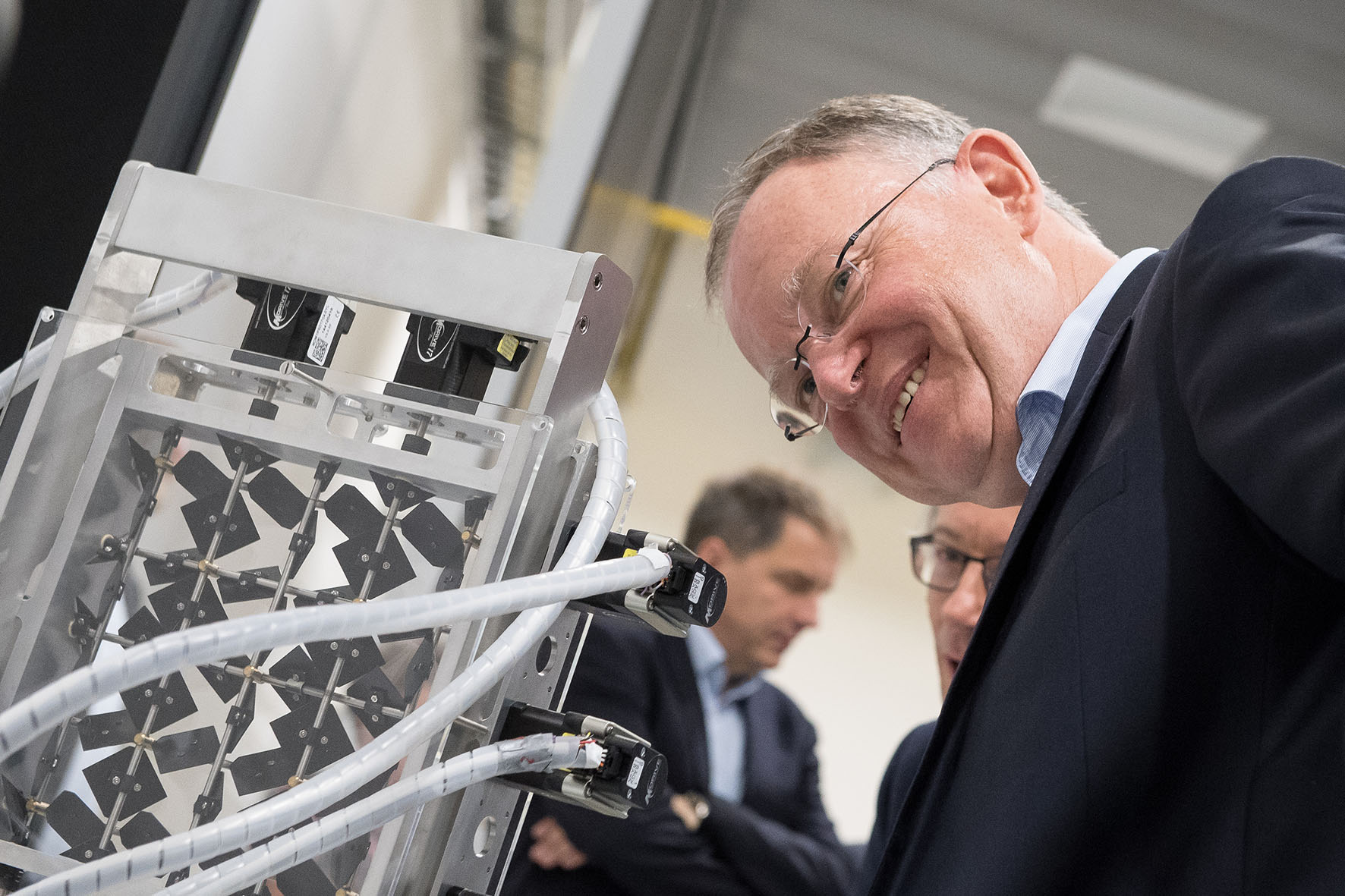 Ministerpräsident Weil inspizierte auch Oldenburgs neuen Turbulenz-Windkanal und die dazugehörigen Komponenten. |