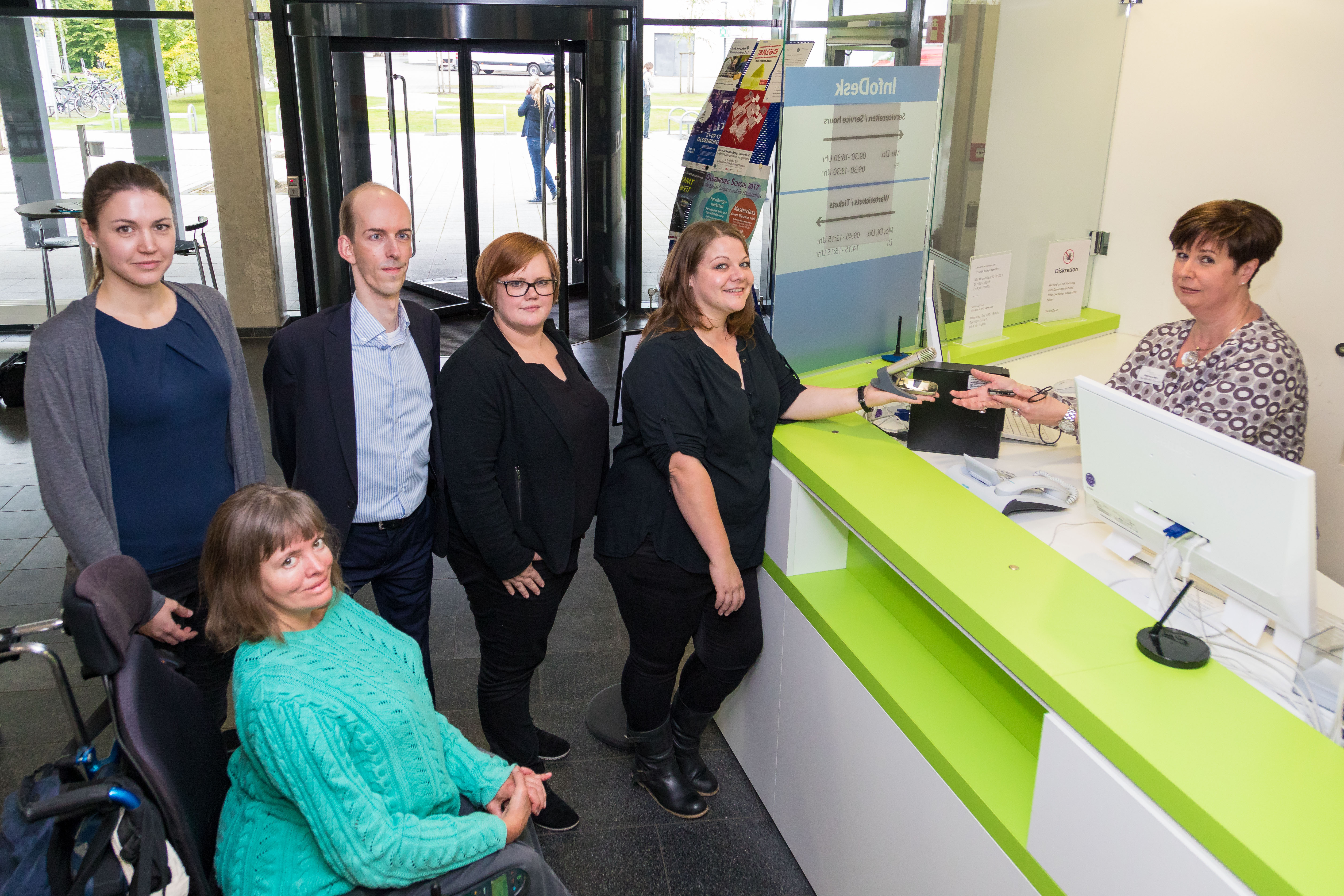 „Im Foyer des SSC gibt es viele Störgeräusche, die Akustik ist sehr hallig. Eine solche Umgebung erschwert es Menschen mit Hörbeeinträchtigungen zusätzlich, ihr Gegenüber zu verstehen“, erklärt Podszus. Die mobile FM-Anlage beim Empfangstresen könne dazu beitragen, dass Studierende mit elektronischen Hörhilfen adäquat und ohne fremde Hilfe ihre Prüfungs- und Studienangelegenheiten regeln können. Da das Gerät mobil sei, könne es auch gleich in ein Beratungsgespräch mitgenommen werden.