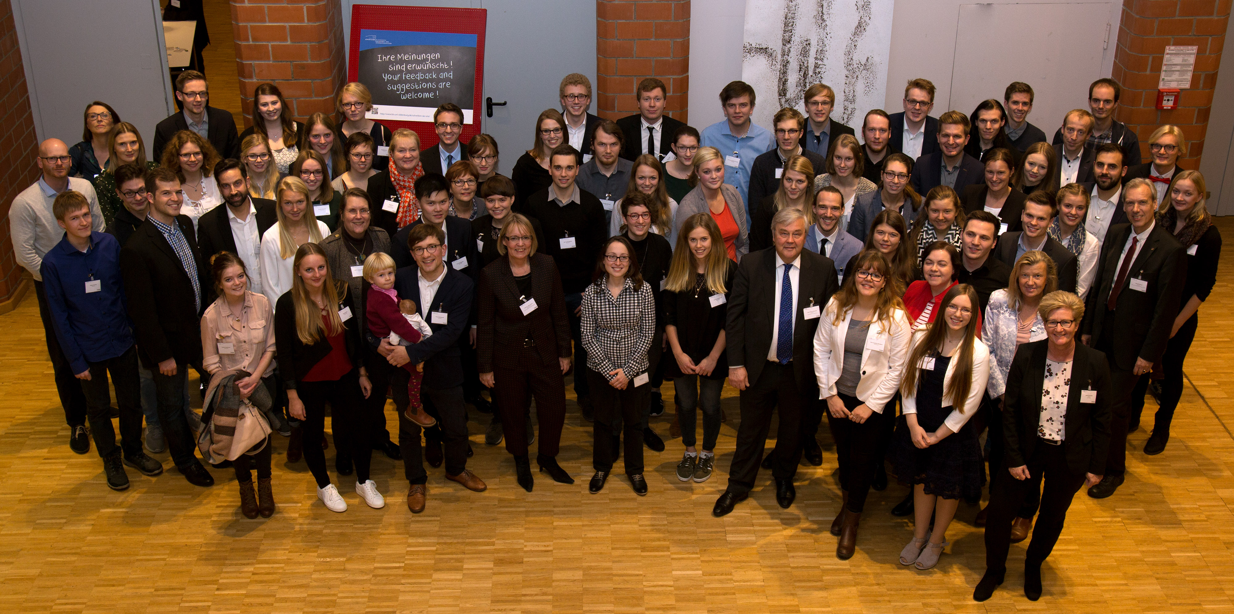 Gemeinsam mit den Stipendiaten und Förderern: die Vizepräsidentin für Studium, Lehre und Gleichstellung Prof. Dr. Sabine Kyora (vorne, 7. v. r.). Foto: Universität Oldenburg |