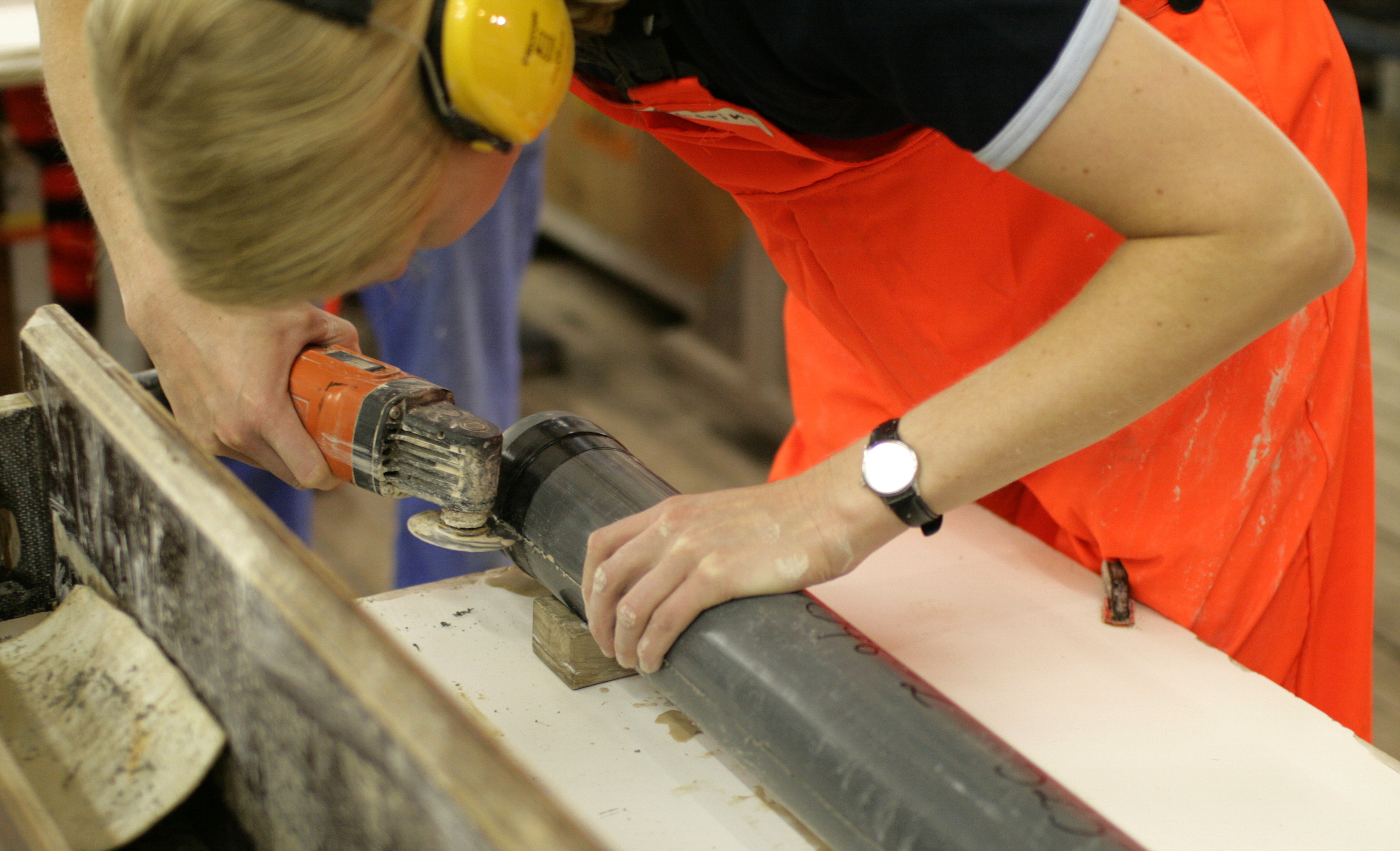 Katharina Pahnke beim Aufschneiden eines Sedimentkerns aus dem Südpazifik. Foto: Katharina Pahnke, Universität Oldenburg |