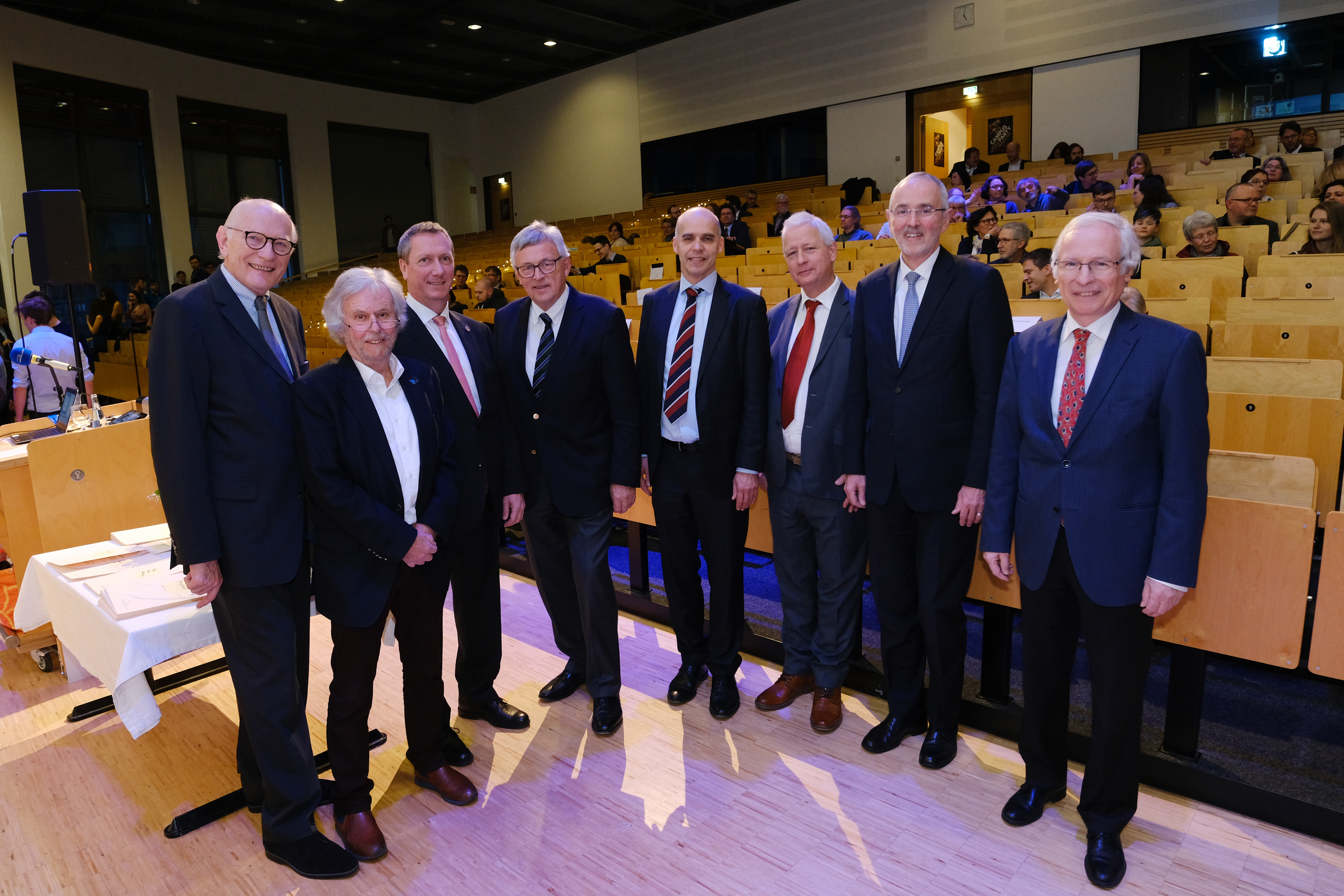 Prof. Dr. Reto Weiler, Neurobiologe und Mitinitiator der Oldenburger Universitätsmedizin, unterstrich in seiner Festrede den hohen Stellenwert der Universitätsmedizin für den Nordwesten Deutschlands. Prof. Dr. Erik Boddeke, Forschungsdekan des Universitätsklinikums Groningen (UMCG), gratulierte im Namen der niederländischen Partner den geehrten Studierenden und Absolventinnen und Absolventen der Oldenburger Fakultät.