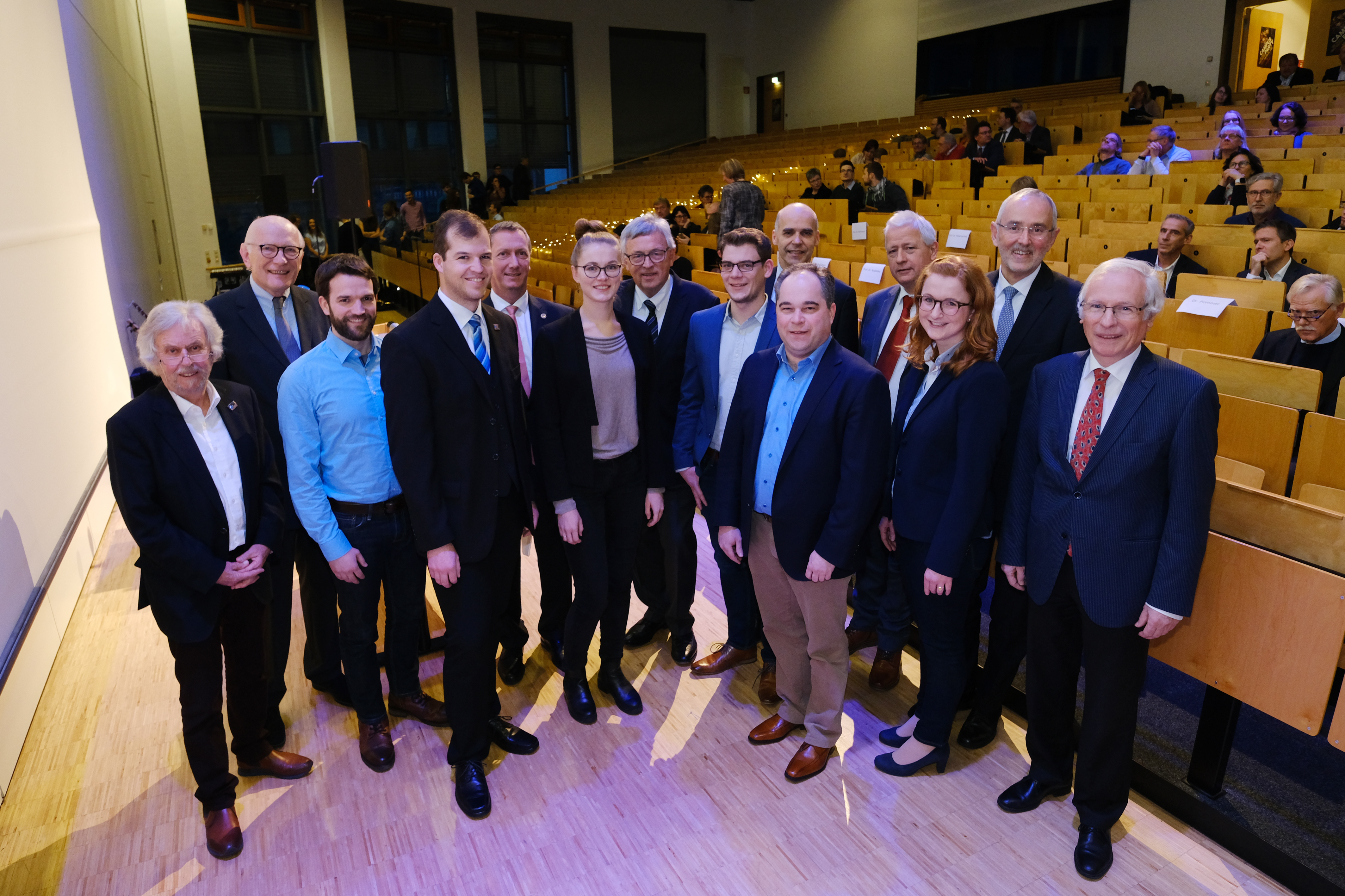 Die Geehrten und Gratulanten (v. l.): Prof. Dr. Reto Weiler, Dr. Gerd Pommer, Dr. Andreas Schönfeld, Johannes Grone (Absolvent Humanmedizin), Prof. Dr. Christoph Herrmann, Nadine Jacobsen, Hon.-Prof. Dr. Werner Brinker, Marcel Thier (Absolvent Humanmedizin), Prof. Dr. Hans Gerd Nothwang, Prof. Dr. Simon Doclo, Prof. Dr. Erik Boddeke, Friederike Lohne (Absolvent Humanmedizin), Prof. Dr. Dr. Klaus Peter Kohse, Prof. Dr. Meinhard Simon. Es fehlt die vierte Absolventin der Humanmedizin Kathrin Treetzen. Foto: Universität Oldenburg |