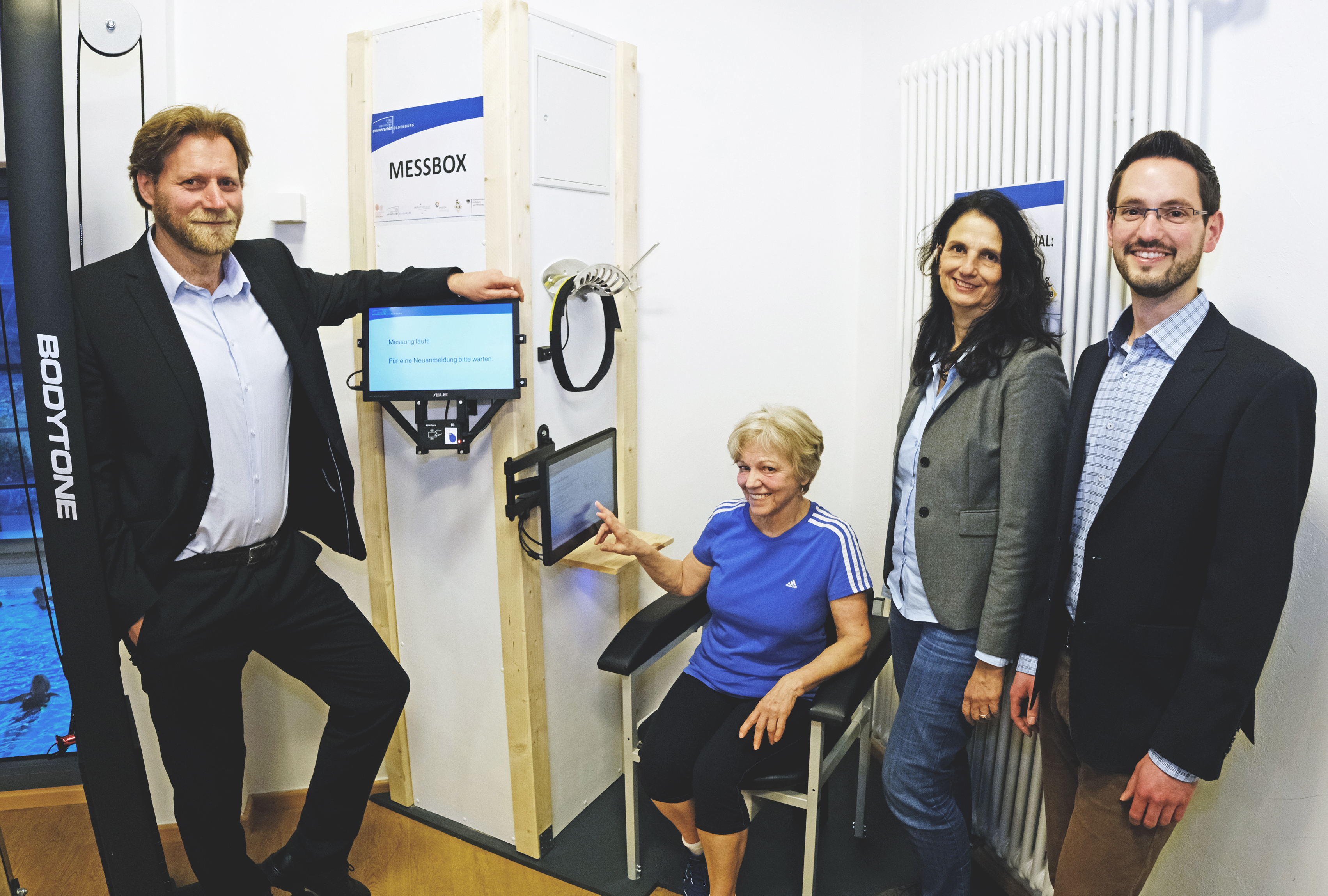 Wer als Proband oder Probandin an der Studie mitwirken möchte: Die Messbox ist vom 01. April bis 31. Juli im BTB Bewegungsstudio B2 (Alexanderstraße 207) im Einsatz. Eine zweite Box steht bereits im Erdgeschoss im Gebäude V04 der Universität (Ammerländer Heerstraße 140). Beide Messboxen sind während der Öffnungszeiten frei zugänglich und können von jeder Person ab 65 Jahren genutzt werden.