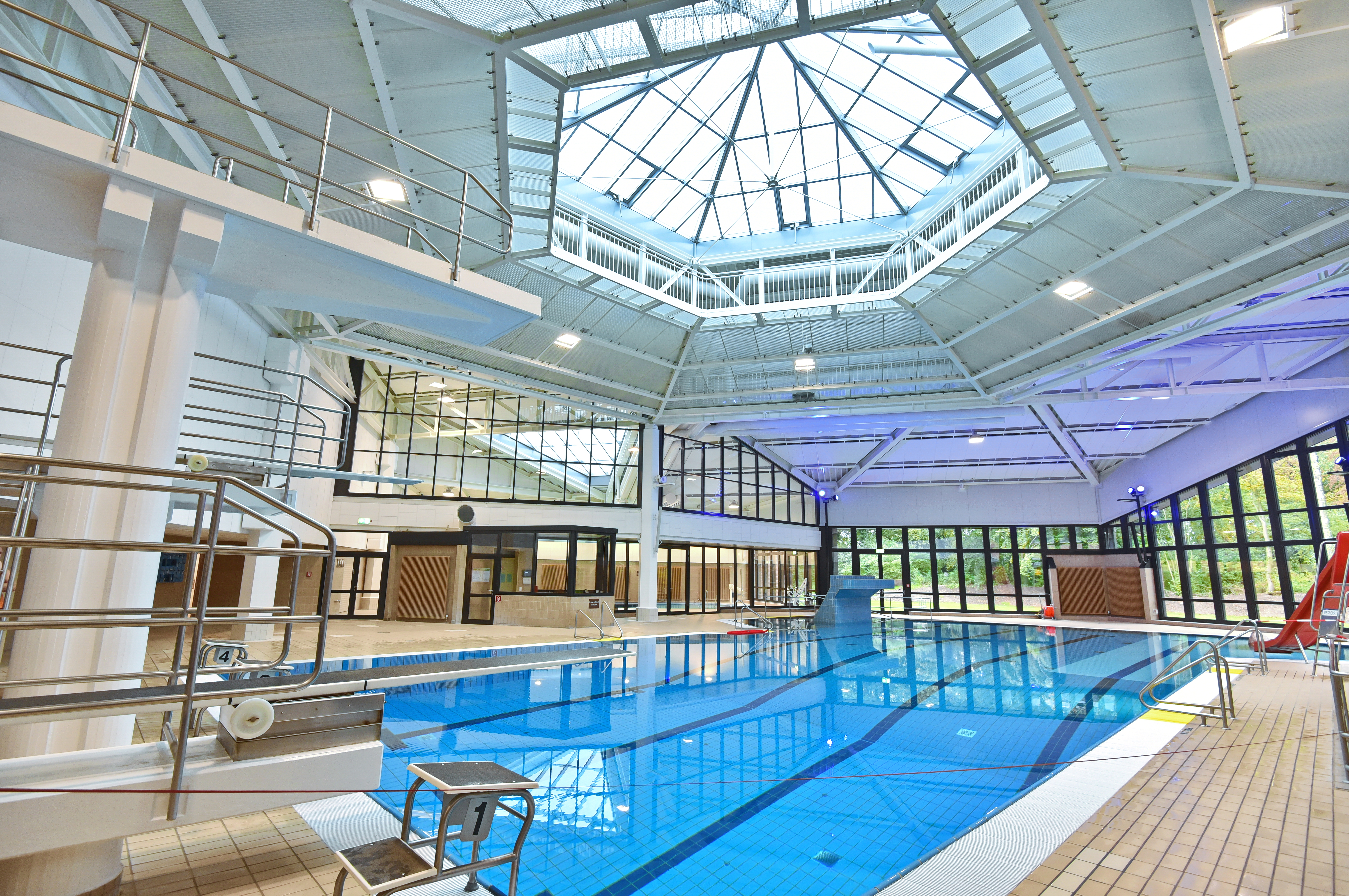 Der sanierte Innenbereich des Schwimmbads wirkt nun sehr viel freundlicher, unter anderem dank eines neuen Beleuchtungskonzepts. Foto: Universität Oldenburg/Tobias Frick |
