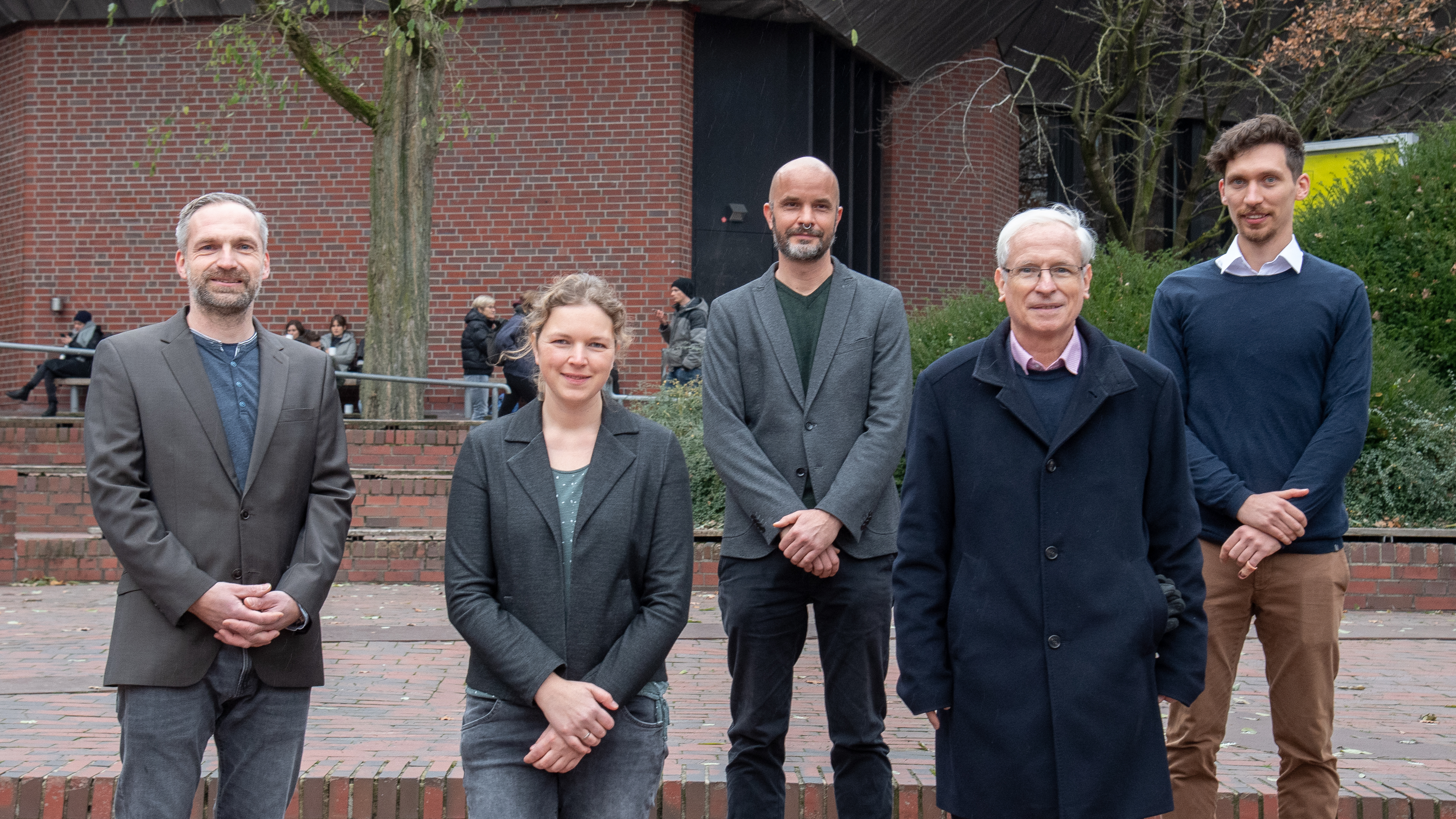 Die diesjährigen Preisträger Dr. Helge-Ansgar Giebel, Dr. Sara Billerbeck, PD Dr. Christian Schmitt, Prof. Dr. Meinhard Simon und Nils Rademacher (v. l.). Nicht auf dem Bild ist Dr. Nils Pancratz. Foto: Universität Oldenburg |