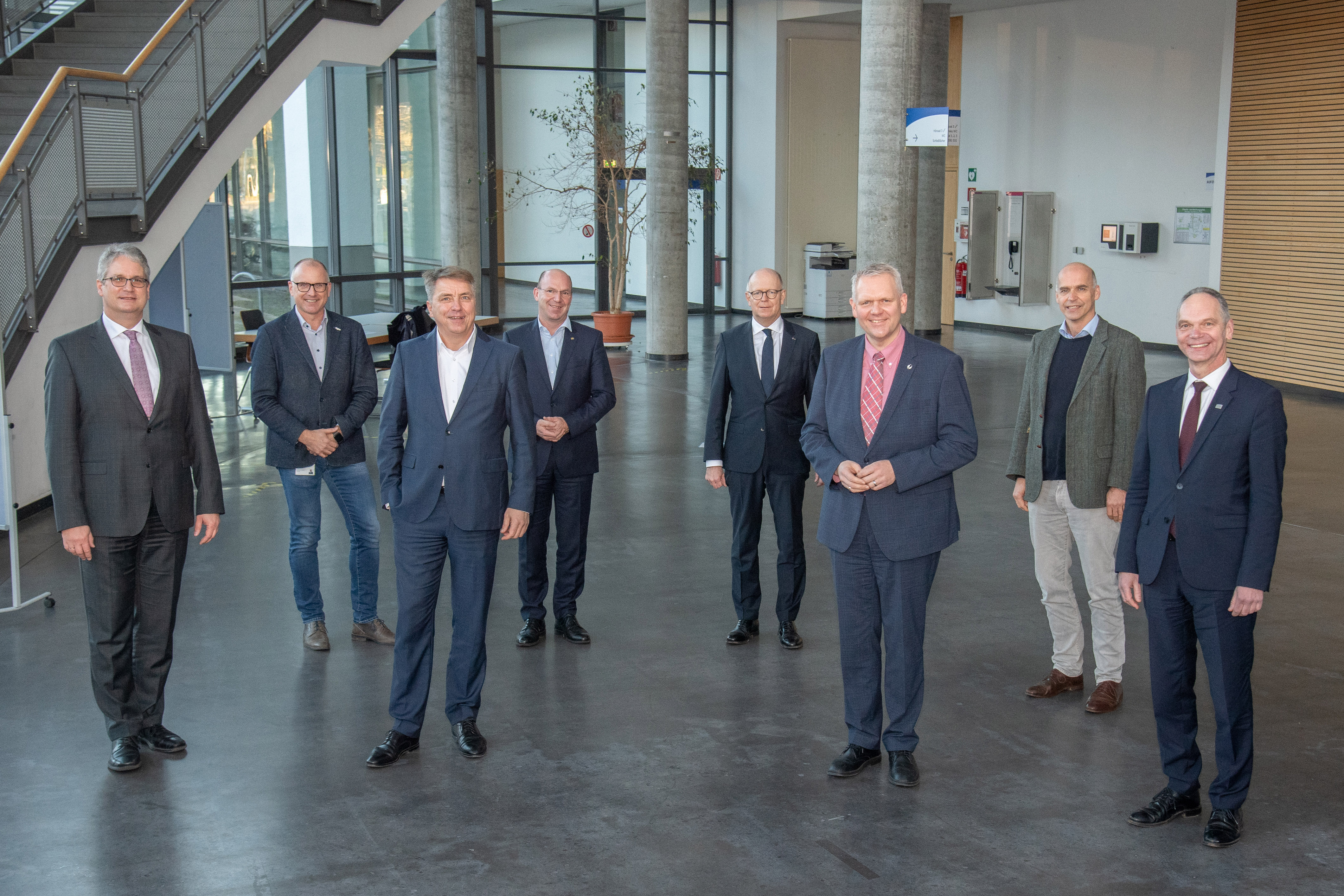 Trafen sich zur Unterzeichnung der gemeinsamen Erklärung (v.l.n.r.): Jörg Stahlmann, Vizepräsident für Verwaltung und Finanzen der Universität Oldenburg; Dr. Alexander Poppinga, Vorstand Evangelisches Krankenhaus Oldenburg; Jürgen Krogmann, Oberbürgermeister Stadt Oldenburg; Michael Winkler, Geschäftsführer Pius-Hospital Oldenburg; Rainer Schoppik, Kaufmännischer Vorstand Klinikum Oldenburg; Björn Thümler, Niedersächsischer Wissenschaftsminister; Prof. Dr. Hans Gerd Nothwang, Dekan Fakultät VI Medizin- und Gesundheitswissenschaften der Universität Oldenburg; Prof. Dr. Ralph Bruder, Präsident der Universität Oldenburg |