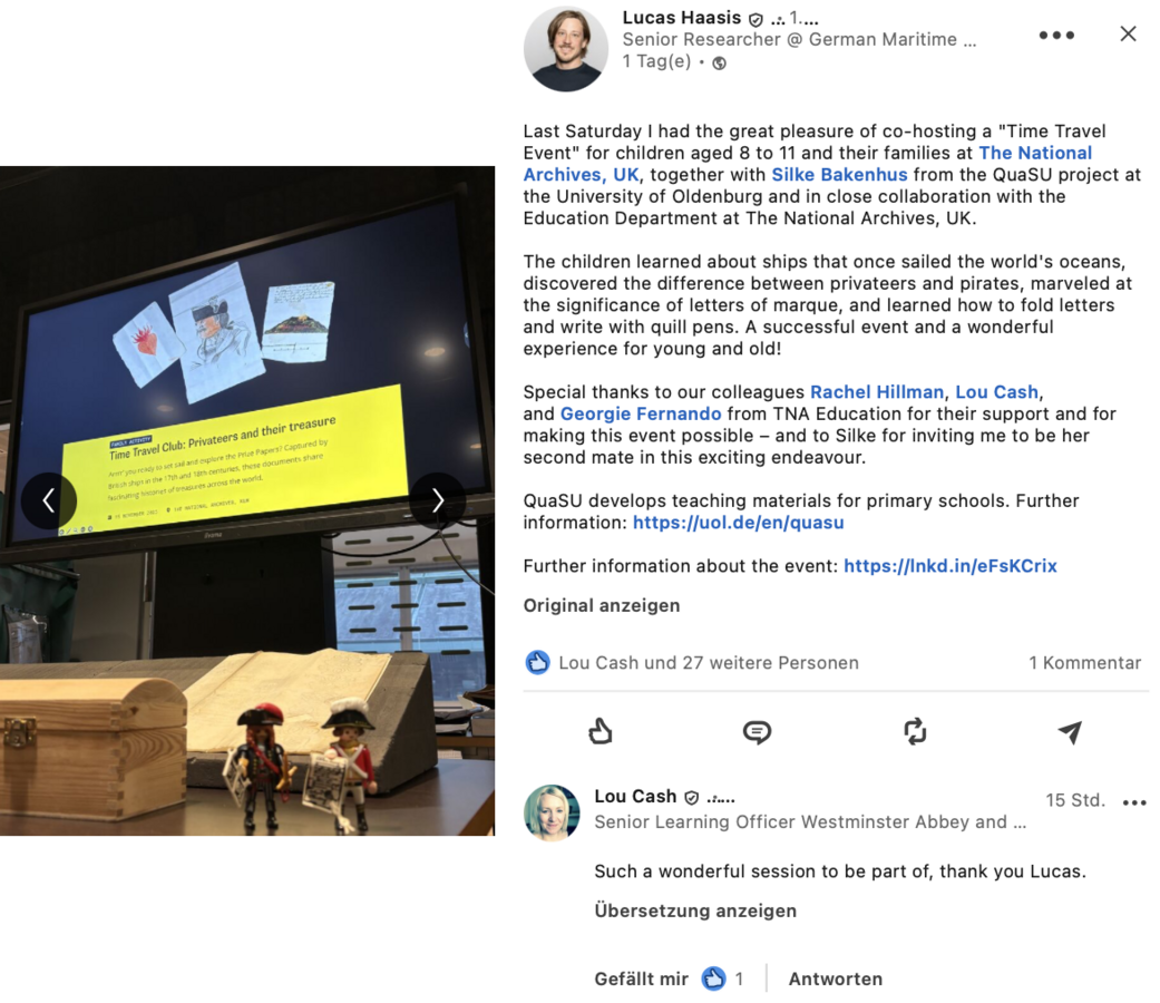 This event is run in partnership with Dr. Silke Bakenhus, who leads the the the QuaSU project and works at Carl von Ossietzky University Oldenburg in the Department of Primary Education and Social Studies.