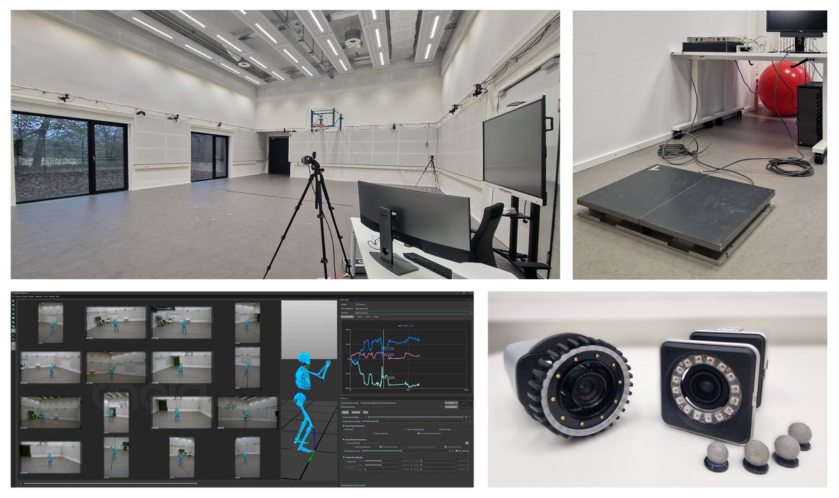 Das Bewegungslabor ist der größte Raum des Gebäudes und bietet zahlreiche Möglichkeiten der sportbiomechanischen Analyse von Bewegung. Verschiedene Systeme zur Erfassung sowohl kinematischer als auch kinetischer Daten stehen zur Verfügung. Hierzu zählen u. a. ein markerbasiertes System mit 16 hochauflösenden Infrarotkameras (Hersteller: Vicon), ein markerloses System mit 16 hochauflösenden Videokameras (Hersteller: Qualisys bzw. Theia) sowie zwei Kraftmessplatten (Hersteller: AMTI). Zusätzlich können diese Systeme mit mobilen Systemen zur Messung der Blickbewegung (Hersteller: PupilLabs, s. u.) und der Hirnaktivität (EEG; Hersteller: mbraintrain) kombiniert werden. Im Labor findet sich eine fest installierte Basketballkorbanlage sowie ein mobiles Golf-Putting-Green. Zudem ermöglicht die offene Gestaltung des Labors die Erforschung verschiedenster Bewegungen, indem die freie Fläche selbst genutzt oder andere Gerätschaften installiert werden können (z. B. Laufband, Handballtor, Trampolin). Auf diese Weise bietet das Bewegungslabor vielseitige Gelegenheiten, verschiedenartige Fragestellungen im Kontext der Sportbiomechanik, der Sportmotorik und der Sportpsychologie zu erforschen (u. a. Wahrnehmungs-Handlungs-Kopplung).