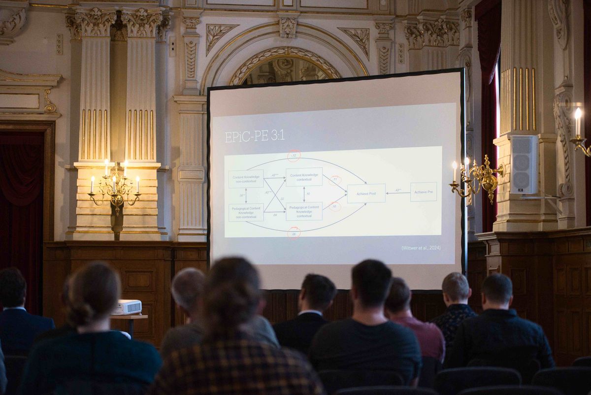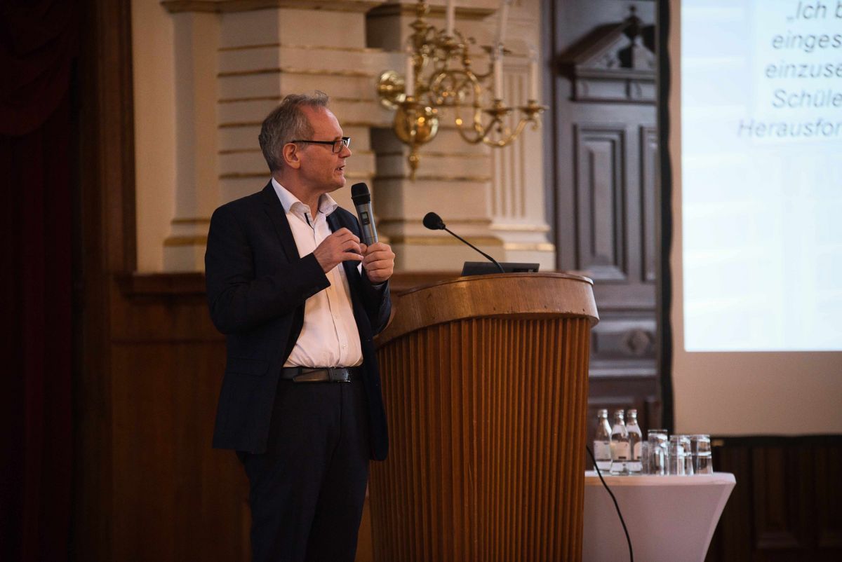 Der Hauptvortrag von Prof. Dr. Horst Biedermann (Rektor der Pädagogischen Hochschule St. Gallen) thematisiert die Anforderungen an Lehrpersonen, Lernprozesse von Schülerinnen und Schülern unter Berücksichtigung individueller Bedürfnisse erfolgreich zu initiieren. Dabei betont Horst Biedermann die Herausforderungen der Unvorhersehbarkeit und Komplexität des Unterrichts und stellt das hochschuldidaktische Konzept der „professionellen Lernkerne“ vor, welches auf der wissenschaftlich begleiteten Reflexion von misslungenen Unterrichtssequenzen basiert. Ziel ist es, die Verbindung von Theorie und Praxis durch hybride Räume zu stärken, wobei Lehrpersonenbildende verschiedene Rollen wie Forschende und Praxisbegleitende übernehmen müssen, um den Anforderungen der Lehrpersonenbildung gerecht zu werden. Horst Biedermann lud zu einer mutigen Auseinandersetzung mit dem Thema mit Brüchen und Irritationen im Professionalisierungskontext ein und regte damit zu einer intensiven Diskussion an.