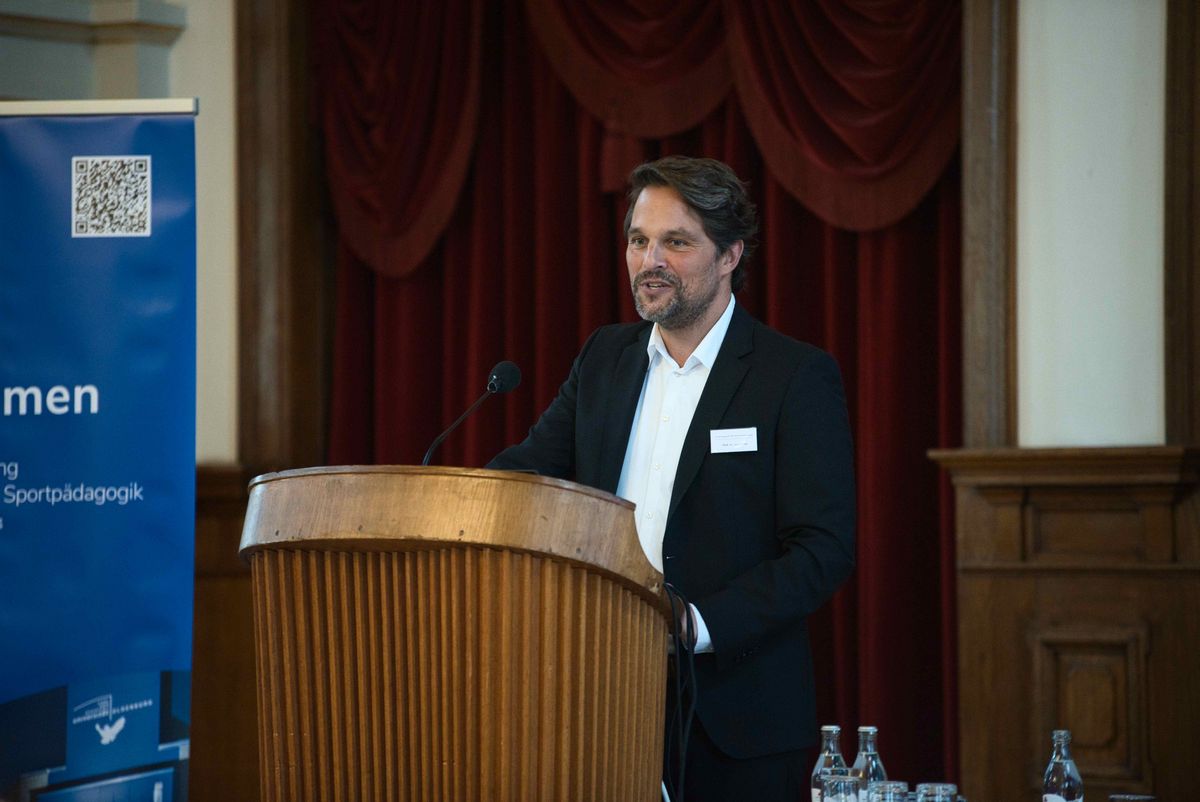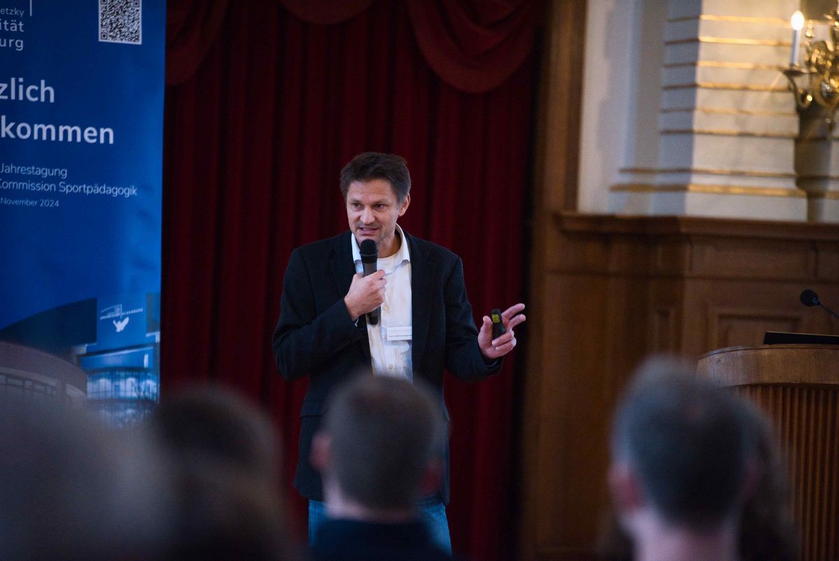 Der Hauptvortrag von Prof. Dr. Roland Messmer (Pädagogische Hochschule Nordwestschweiz) thematisiert Lücken in der Ausbildung von Sportlehrpersonen, sowohl inhaltlich als auch methodisch. Während Defizite im Professionswissen angehender Lehrkräfte erkannt wurden, fehlen empirische Daten zur Effektivität der sportdidaktischen Lehre. Roland Messmer gibt im Vortrag Einblicke in seine EPiC-PE-Studie und hebt kritisch hervor, dass für erfolgreichen Sportunterricht offenbar nur wenig Professionswissen erforderlich ist. Die übliche Trennung zwischen Pedagogical Content Knowledge (PCK) und Content Knowledge (CK) lässt sich im Bereich der Sportdidaktik kaum belegen. Der Vortrag hinterfragt, welche Lernaufgaben und zentralen Kompetenzen Sportstudierende benötigen, um praxisorientiert ausgebildet zu werden und ihre Ausbildung gleichermaßen von Anforderungsprofil von Trainer:innen oder Sozialpädagog:innen abzugrenzen.