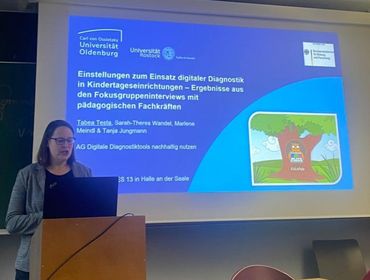 In der Arbeitsgruppe „Digitale Diagnostiktools nachhaltig nutzen” brachte sich das Team aus dem EuLe-F Projekt mit dem Kurvortrag unter dem Titel „Einstellungen zum Einsatz digitaler Diagnostik in Kindertageseinrichtungen - Ergebnisse aus den Fokusgruppeninterviews mit pädagogischen Fachkräften” mit anschließender Diskussion ein.