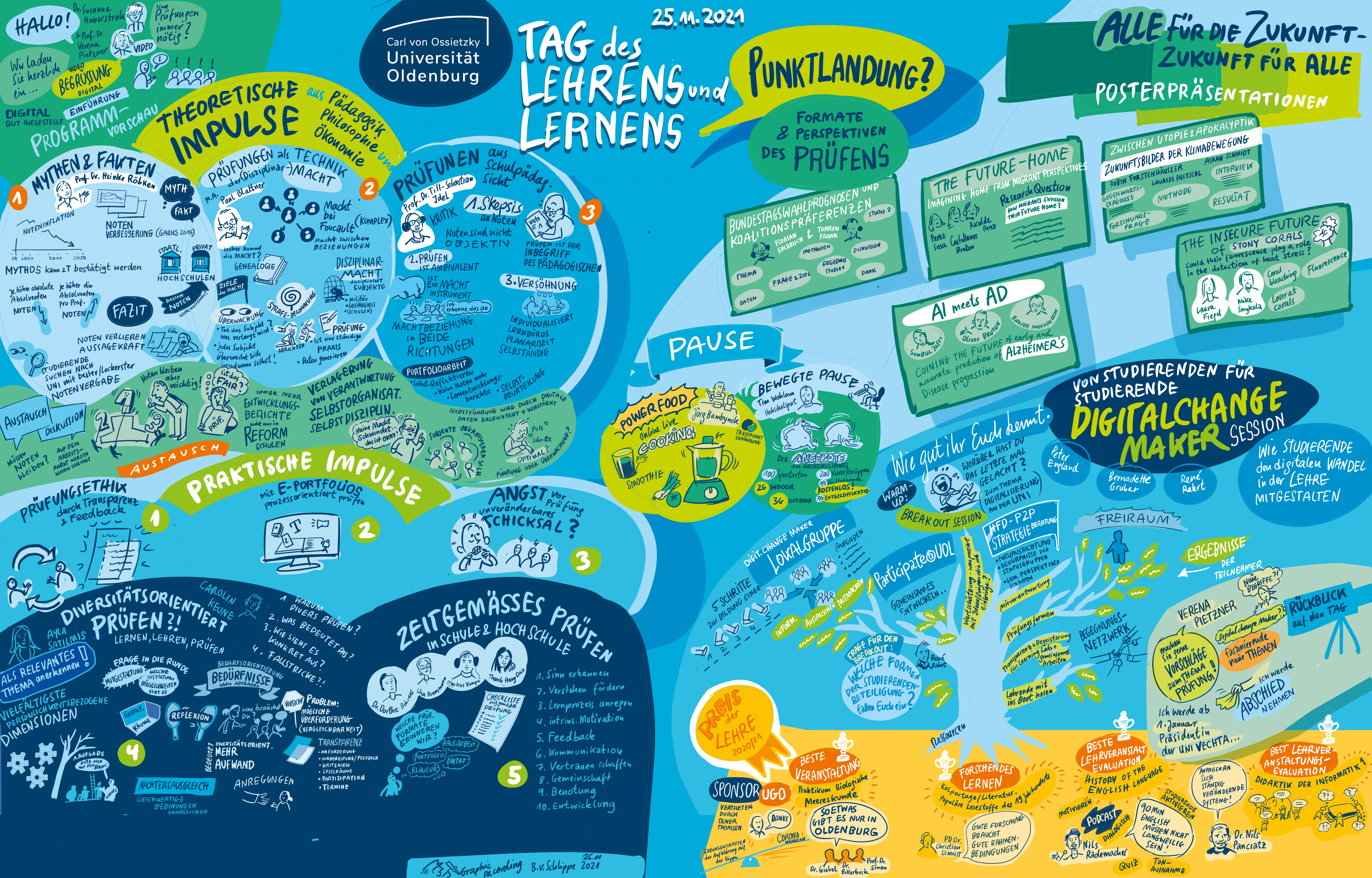 In den fünf parallel stattfindenden kurzen Beiträgen wurden unterschiedliche praktische Perspektiven auf Prüfungen präsentiert und diskutiert: Welche Rolle spielt die Prüfung für das Lernen? Wie lassen sich Prüfungen durch Feedback transparent gestalten? Wie kann ein E-Portfolio den Lernprozess begleiten und zugleich als Prüfungsleistung dienen? Was bedeutet diversitätsorientiert prüfen? Und wie können Lehrende und Studierende mit Angst vor und in Prüfungen umgehen?