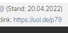 Die ID einer UOL-Seite können Sie ermitteln, indem Sie im Seitenfuß rechts neben dem Datum den unsichtbaren Link anklicken (Mauspfeil ändert sich auf Klicksymbol, siehe Abb. 2 + 3).