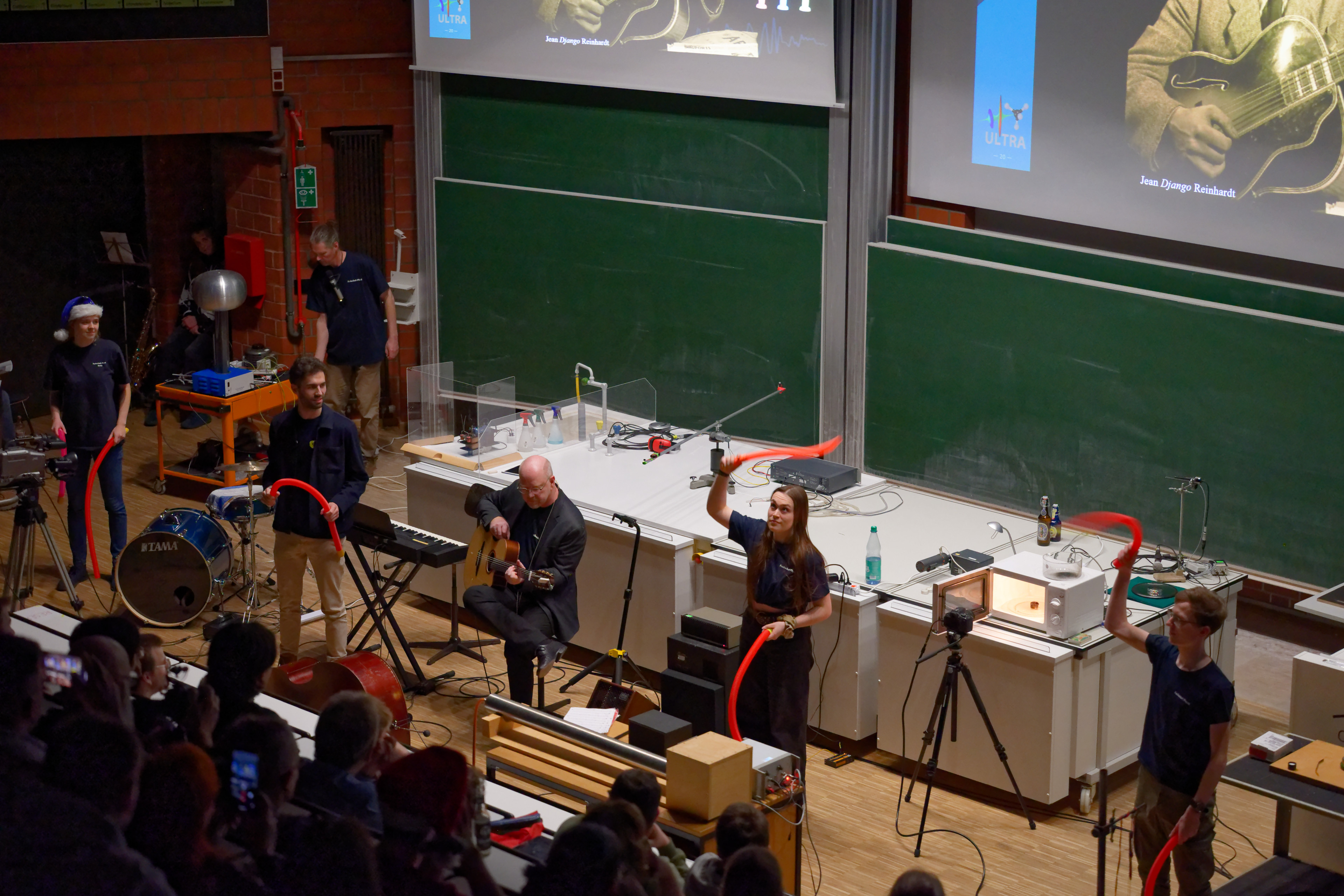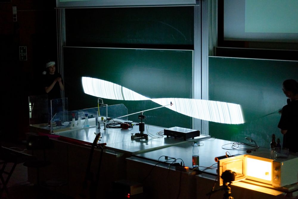 Physikshow von Matthias Wollenhaupt, Lea-Christin Feld und Bernd Schwenker über die Schönheit und Vielfalt von Wellenfunktionen bis hin zur Schrödinger-Gleichung.