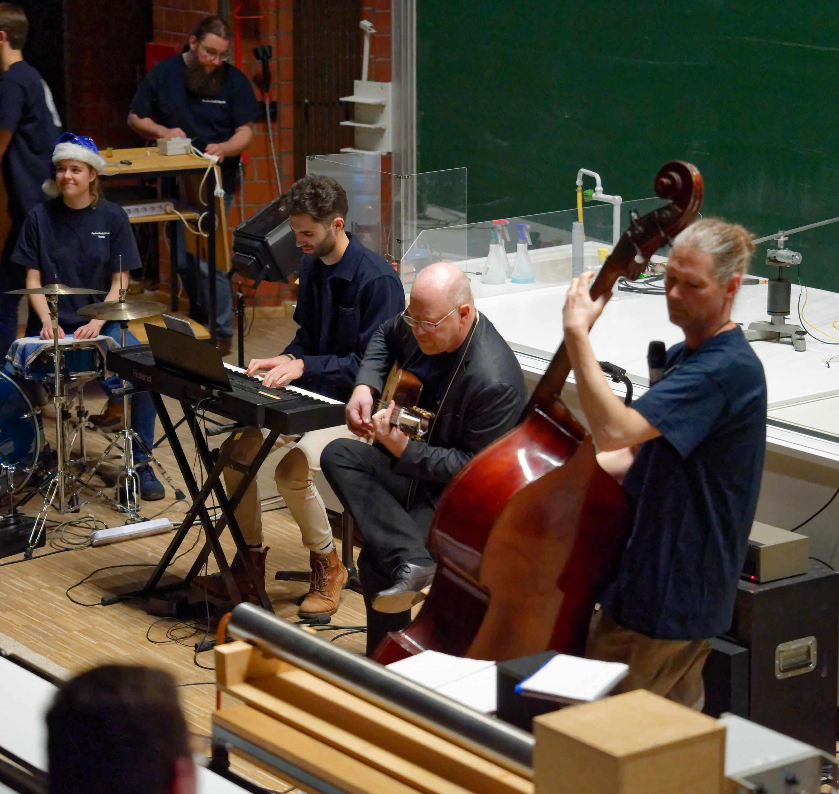 Ausgerichtet von der jDPG Oldenburg und der Fachschaft Physik fand gestern die Weihnachtsvorlesung mit dem Titel „Lumos – die perfekte Lichtwelle” statt. In dieser begeisterten Matthias Wollenhaupt und Bernd Schwenker den vollbesetzten Hörsaal mit zahlreichen Experimenten.