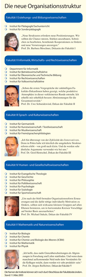 des Meeres (ICBM). Neu ist die Institutsstruktur auch für die Fächer