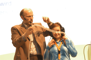 | "Eine Vanessa steht vorn beim Professor": Birger Kollmeier bei einer Vorführung mit einem Kind (oben rechts). |