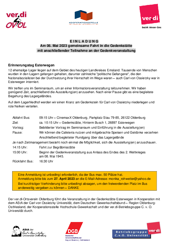 Ostfriesland, der Kooperationsstelle Hochschule-Gewerkschaft und der ver.di-Betriebsgruppe C. v. O.