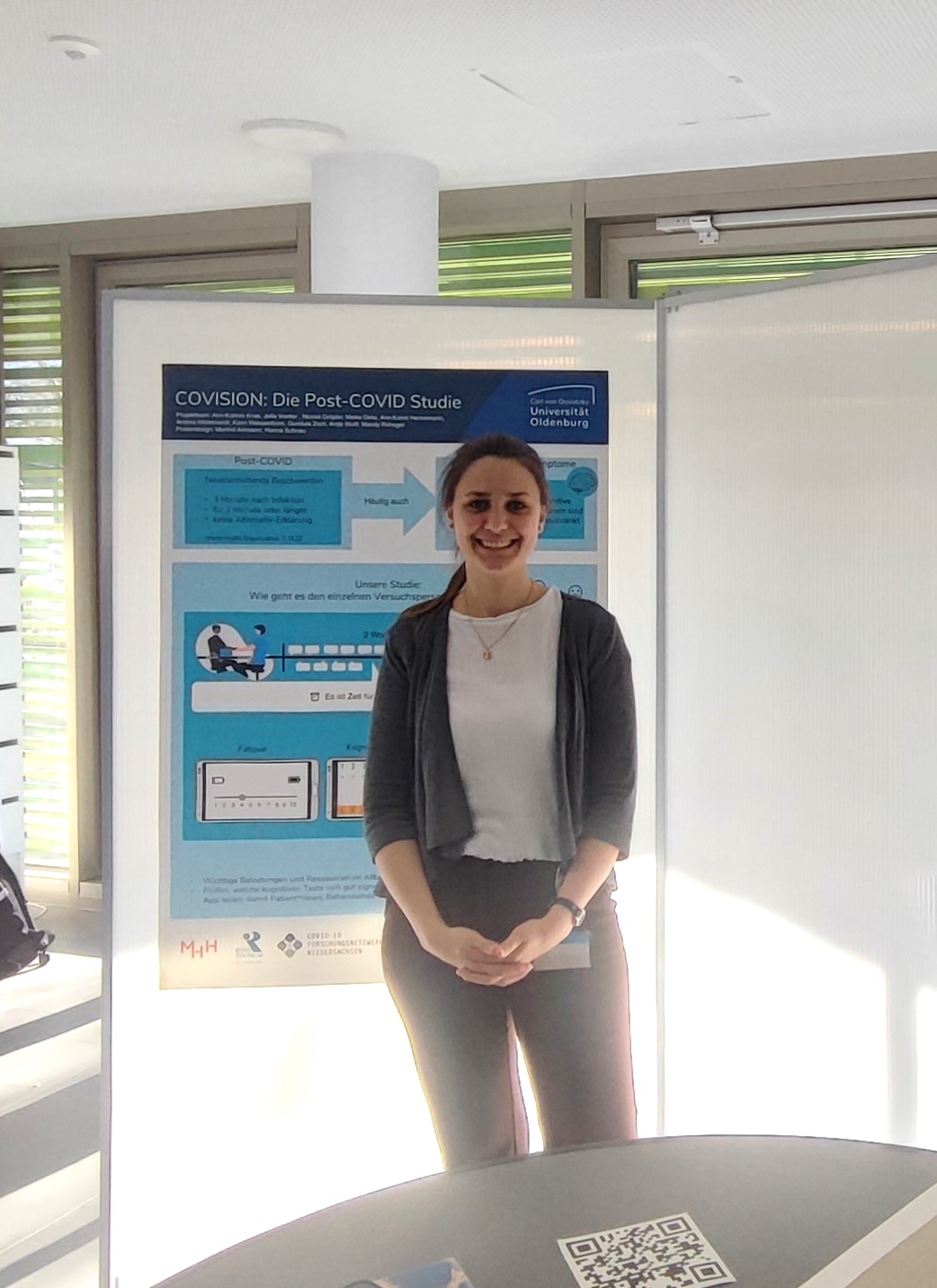 Es gibt nach wie vor viele Personen mit Post-COVID-Syndrom, die sich dringend neue Erkenntnisse aus der Forschung wünschen. Das hat der Austausch mit den Gästen der Veranstaltung "Das erforschte Gehirn: Tag der offenen Tür" am 12. März 2025 gezeigt. Ann-Kathrin Knak präsentierte dort die Post-COVID-Studie, die bald im Rahmen des Projekts COVISION durchgeführt wird. Die Veranstaltung war Teil der Brain Awareness Week in Oldenburg (https://uol.de/psychologie/scop/events/brain-awareness-week).